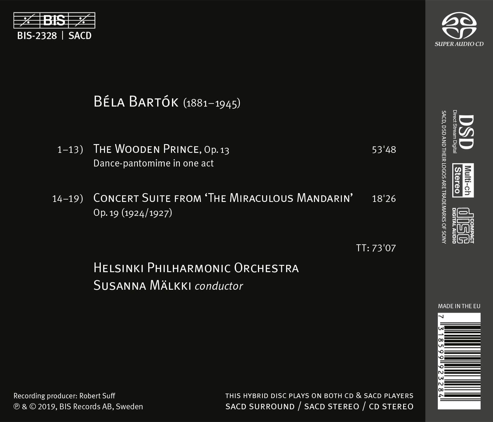 Naturally, a complex score such as The Wooden Prince requires an orchestra capable of extreme virtuosity, and the Helsinki Philharmonic provide this to the full under their newly appointed principal conductor. She guides them in a performance of expressive sweep and, where required, tenderness. The SACD recording, as is so often the case with BIS, is state of the art.