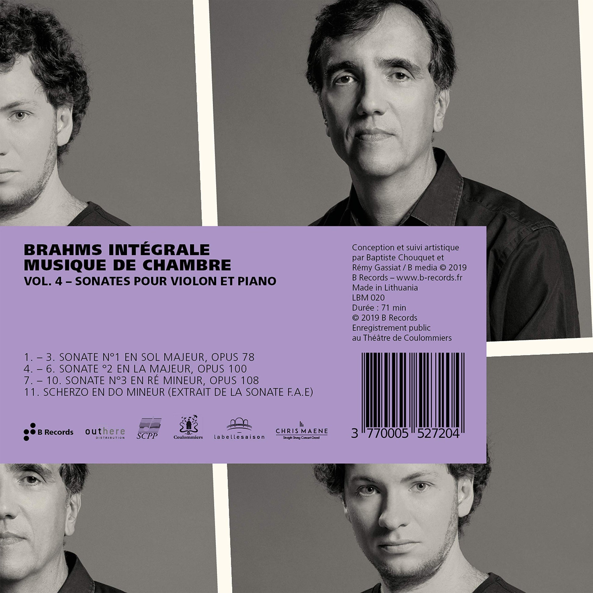 The sonatas for violin and piano, which were composed on holidays to lakeside forests in the midst of sublime nature where Brahms loved to spend his summers, contain all the contradictions unique to the man who described himself as a wanderer: daring and discipline, naïveté and sagacity, melancholy and joy. Pierre Fouchenneret and Eric Le Sage embark fervently on this adventure with this new volume in this crazy journey through Brahms’s complete chamber music works, charted by B Records. Of the project, Pierre Fouchenneret writes: “One crazy day, a few of us decided to embark on a project which, at the time, some people deemed impossible to achieve: to perform all of Brahms’s chamber music within only a few months. Every concert would be recorded… we are now a company, as in the theatre, bonded by an unstoppable urge, a definite notion of boldness, a shared perception of chamber music and a love for the repertoire.”