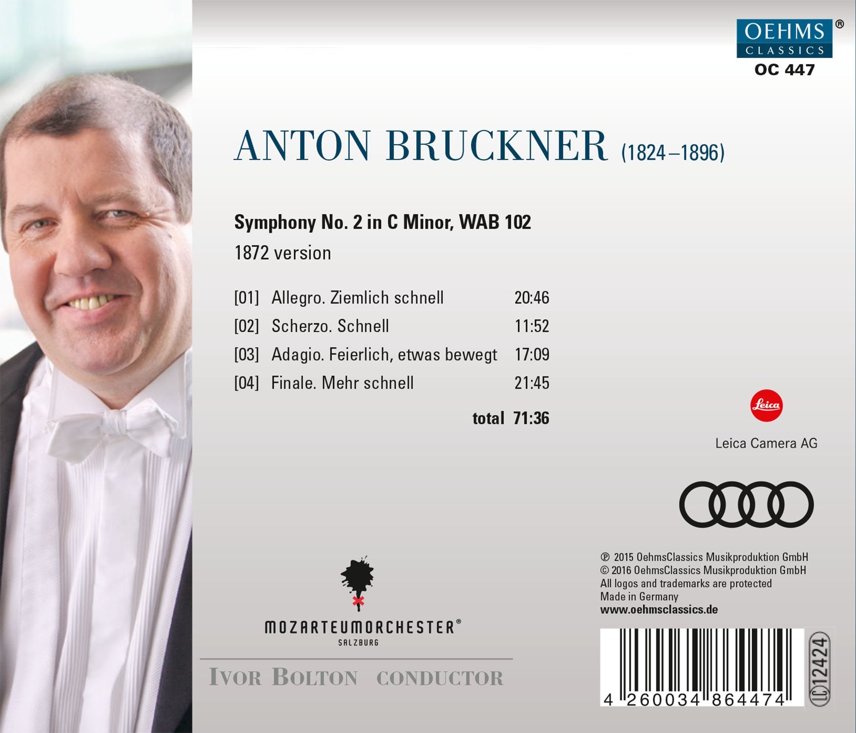 There are at least four versions of Anton Bruckner's 2nd Symphony; the last one was written in 1892. Frequently, however – as on this recording – the original version is preferred; as usual with Bruckner, this version of 1872 is bolder and longer. Already very early on, the composer changed the order of movements in this work, which was felt by many to be a response to the dramaturgy of Beethoven's Ninth Symphony. The Scherzo, as the second movement, has changed places with the ensuing Adagio. In the later version, he also almost completely eliminated the most striking characteristic of this creation, probably due to the urging of his friends and supporters, especially Johann Herbeck: eight of the nine famous tutti rests in the first movement disappear completely. Another special characteristic of the original version is the solo horn passage in the Adagio, written in an extremely difficult register for the instruments of that time – but also of moving beauty.