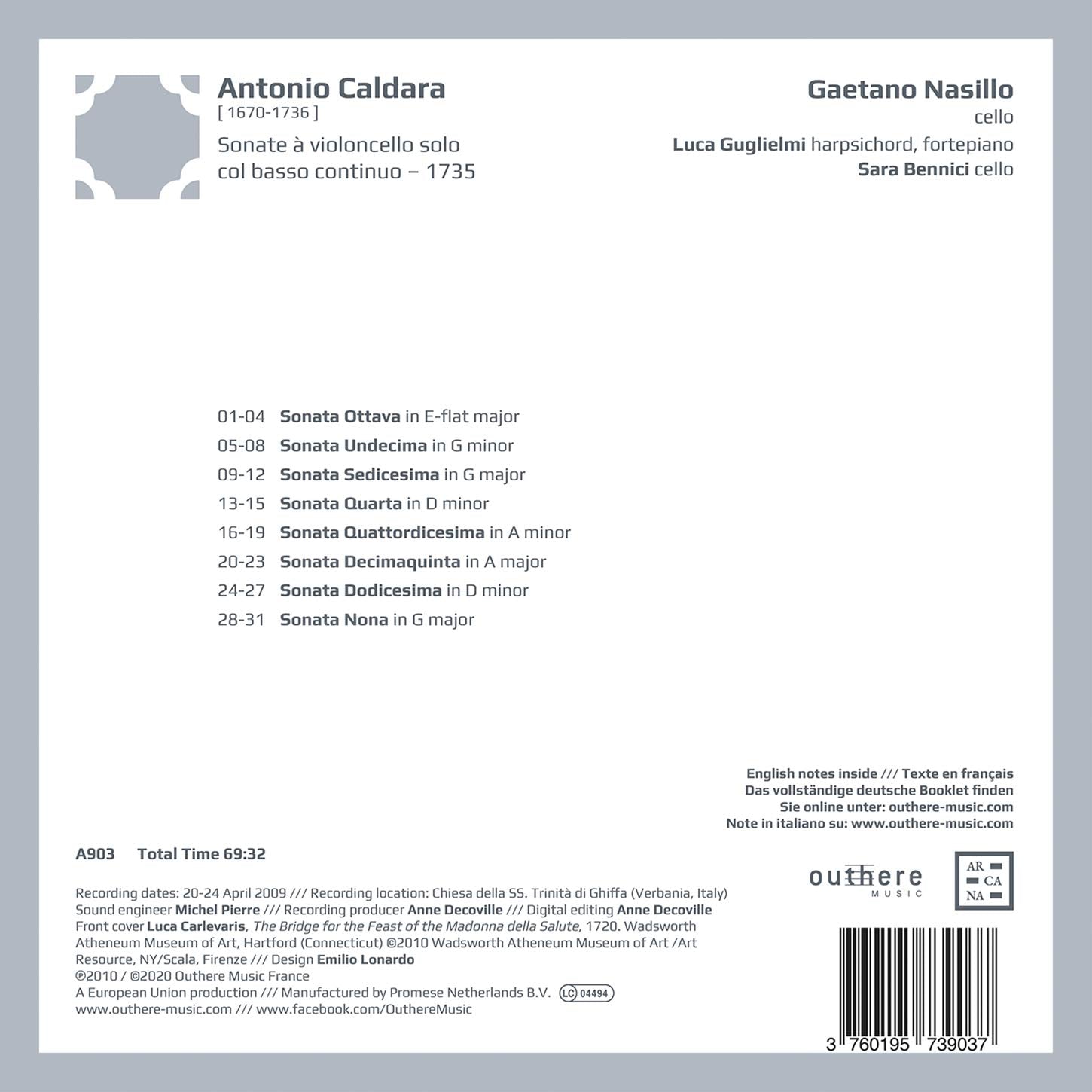 The Venetian-born Antonio Caldara was the son of Giuseppe Caldara, a violinist and, allegedly, a youthful pupil of Giovanni Legrenzi. For more than thirty-five of the forty years of his creative life, vocal music – whether in the shape of cantatas, operas, oratorios or liturgical settings- dominated his output. Yet Caldara began his career by the late 1860s as cellist at the Basilica of San Marco in Venice, and returned to his instrument, if briefly, within eighteen months of his death. Composed five years before the publication of the famous cello sonatas of the most famous Venetian, Antonio Vivaldi, the collection of sixteen sonatas by Antonio Caldara represent a substantial contribution to the late Baroque repertoire of sonatas for solo cello. Those selected for this recording reveal that they come from a collection enriched by experience and maturity, warmed by a fluid and flexible melodic style, enlivened by chromatically enriched harmony, sophisticated in craftsmanship, and imbued with a spirit of confident independence.
