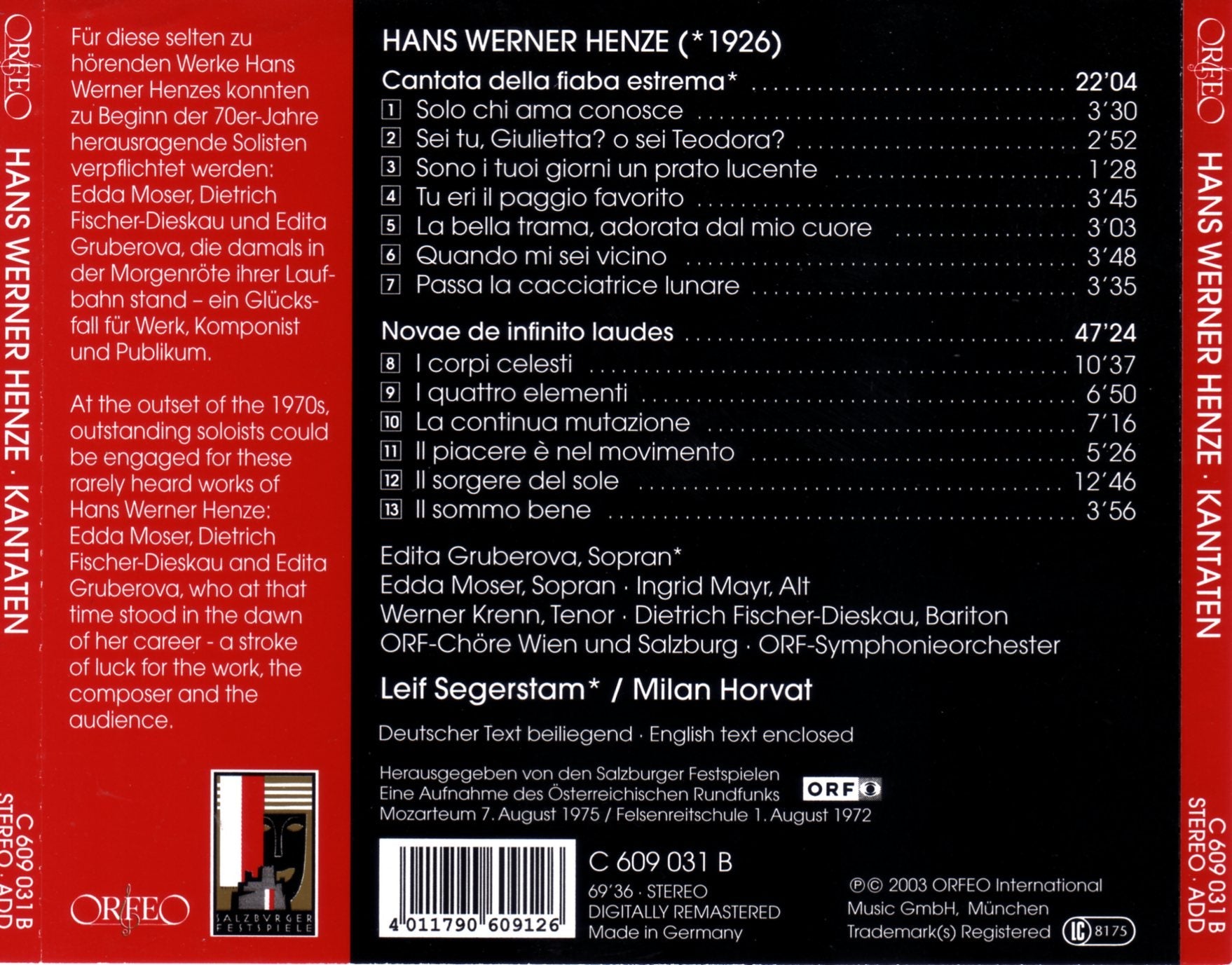 Performer: Gruberova, Moser, Mayr, Krenn, Fischer-Dieskau, Orf-Chöre Wien Und Salzburg