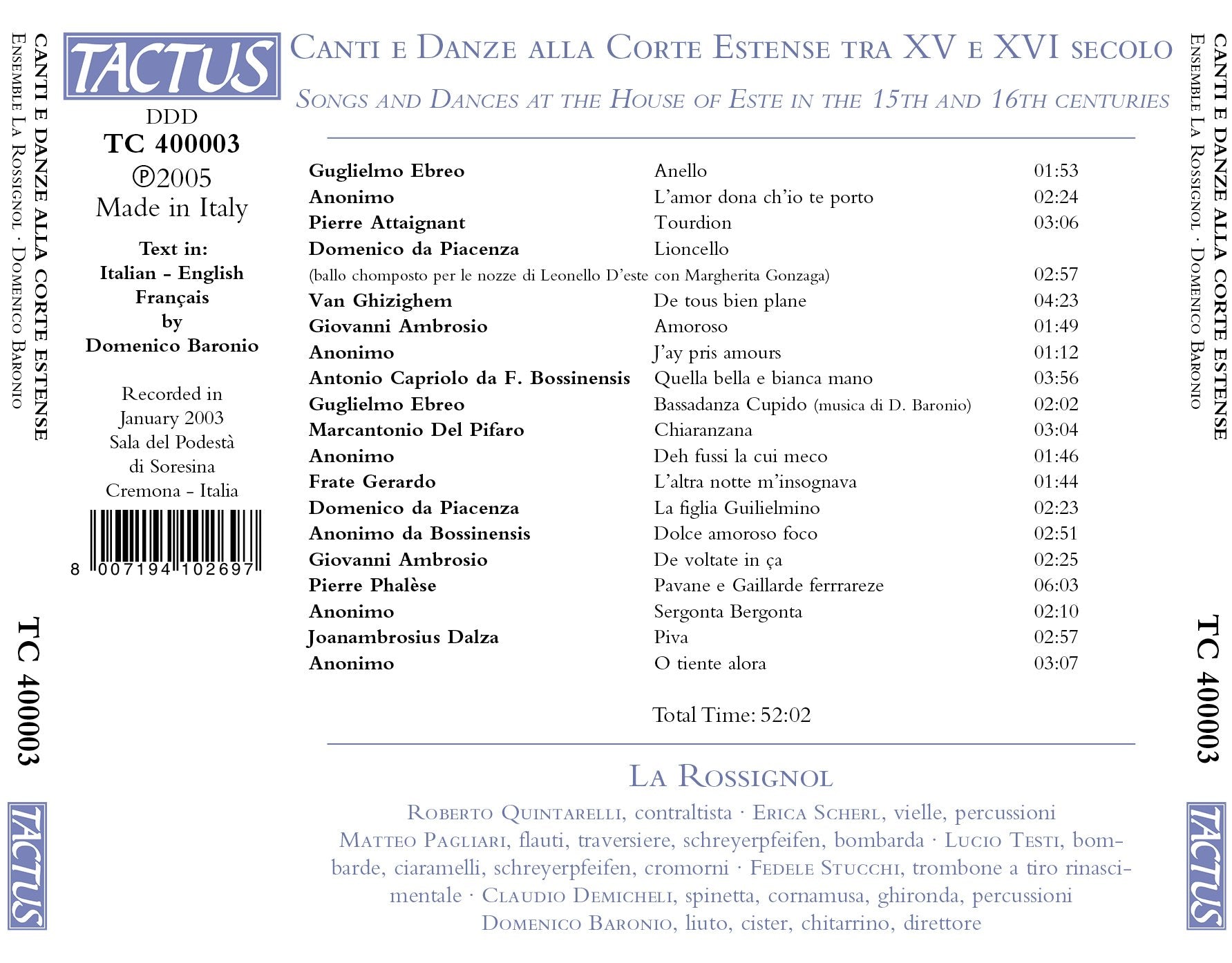 Composer: ANONYMOUS ATTAINGNANT, PIERRE