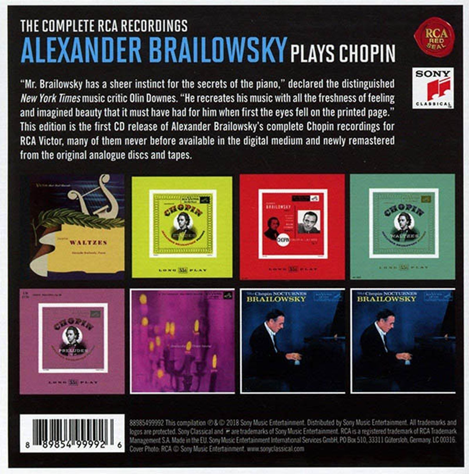 Not surprisingly, Sony Classical’s new comprehensive reissue of Brailowsky’s RCA albums largely comprises music by Chopin. Both piano concertos are included – No. 1 with William Steinberg conducting the RCA Victor Symphony Orchestra in 1949 and No. 2 with Charles Munch and the Boston Symphony Orchestra from 1954. High Fidelity later wrote of these two performances: “Brailowsky’s energetically contoured, sharply etched clarity represents an emerging modernity of outlook that points to present-day Chopin players.” The set also features Brailowsky’s two traversals of the Waltzes, as well as his complete recordings of the Etudes, Preludes, and Nocturnes, plus Sonatas Nos. 2 and 3, the Ecossaises, and Berceuse. Of Brailowsky’s Nocturnes recording, Gramophone’s reviewer wrote: “He could sing beautifully at the keyboard. His nocturnes as a whole have a touching humanity and simplicity … The mono RCA sound is quite velvety.”