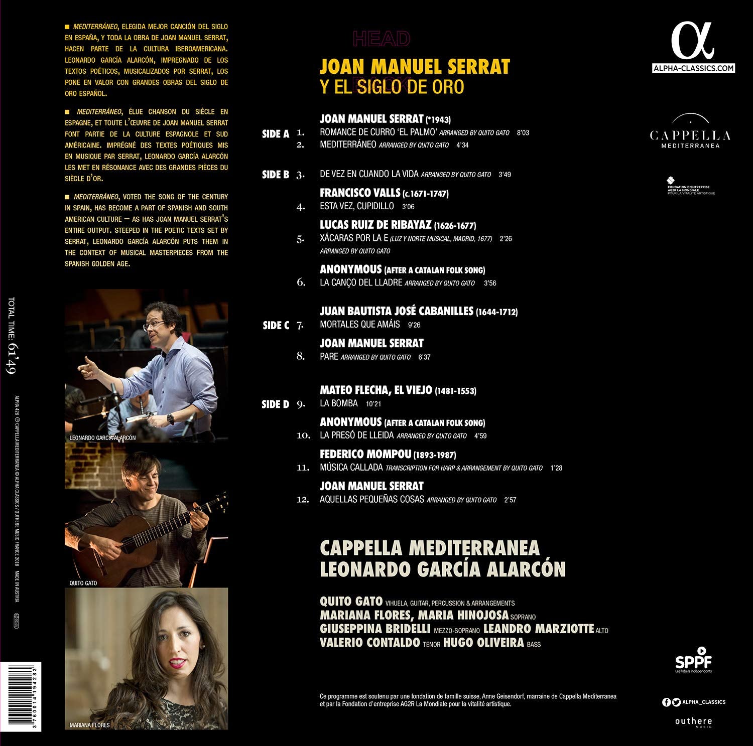Leonardo García Alarcón writes: “The memories of my childhood in Argentina always bring me back to the singer-songwriter Joan Manuel Serrat, synonymous with shared family moments… Serrat’s poetry and music around a barbecue in Argentina; “De vez en cuando la vida” made me cry as it has made millions of people cry in Latin America, Spain and elsewhere… Joan Manuel Serrat is part of our life, he is our Jacques Brel!... Or, if we project ourselves back to the sixteenth century, he is in a sense our little Camerata Fiorentina, that movement of Italian poets and musicians in Florence. Serrat has allowed the whole of Latin America and Spain to reappropriate the works of its poets… He has also been synonymous with freedom and the struggle against dictatorial regimes. His song “Mediterraneo” is one of the emblematic pieces of his career. It is almost a hymn that has special resonance nowadays… I asked my good friend Quito Gato to arrange these songs for our ensemble, Cappella Mediterranea. The orchestration retains typical seventeenth-century instruments: recorders, cornett, violins, viola da gamba, cellos, lutes, harp, harpsichord, organ, with some percussion and a double bass. These period instruments allow us to travel back in time and compare Serrat’s romances with the Ensaladas of Mateo Flecha (1481-1553), the polyphony of Guillaume Dufay, and a composition by Juan Cabanilles that recalls a Bach Passion. The Xacaras, a satirical genre from the Spanish Golden Age dialogues with Serrat’s works, as does the Música callada of the Catalan composer Frederic Mompou, transcribed here for the harp.”