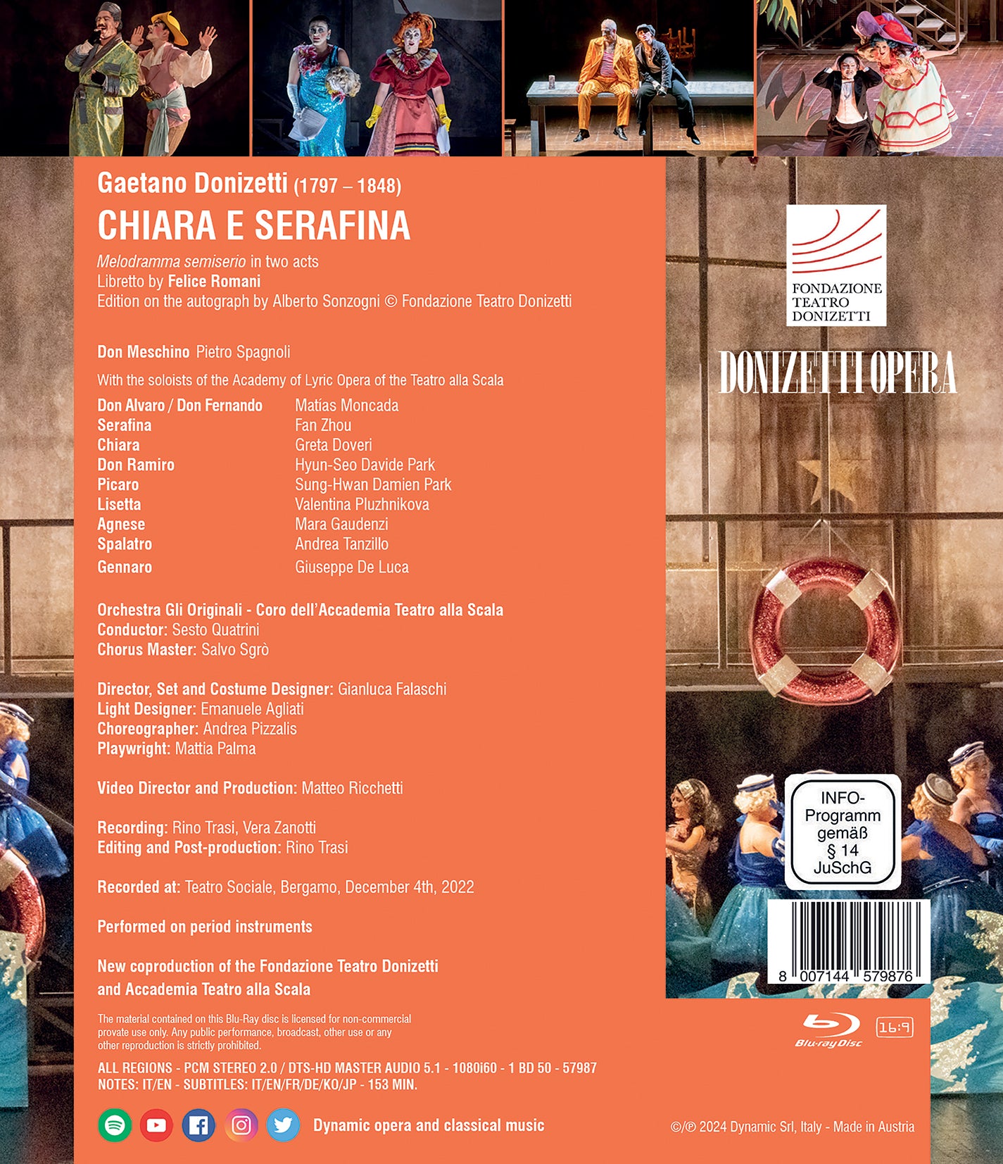 Despite the triumphant reception of his first opera, Gaetano Donizetti was young and inexperienced when he was commissioned to write Chiara e Serafina in 1822 for La Scala. Composed in haste, it was met with disapproval at its premiere and subsequently disappeared without a trace. Thanks to this revival at the Bergamo Donizetti Festival, after exactly 200 years Chiara e Serafina has returned to the stage with a fine production that brings to life an entertaining tale of pirates, lovers, disguises, deceit and peril in 17th-century Majorca.
