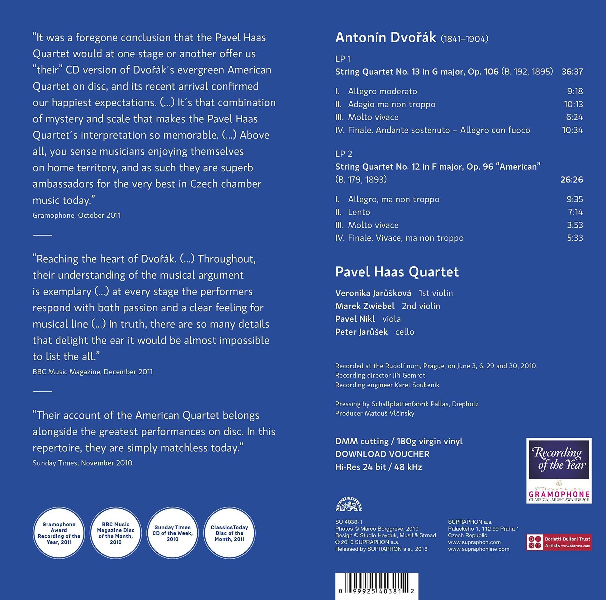 This recording, although relatively new, is one of the rarest gems in the Supraphon archives. After the initial positive reactions the extraordinary quality of the recording was confirmed by prestigious Gramophone Awards; in addition to winning the chamber music category, the young ensemble also brought home from London the top prize: Recording of the Year. Eight years after the first edition, Supraphon is releasing this delicacy for true audiophiles. Dvorák's mature works perhaps best mirror the ensemble's extraordinary qualities: the equilibrium between precision and spontaneity, the remarkable ensemble playing, and the solo potential of all of the individual players. At the end of the draft of his Quartet Op. 96, Antonín Dvorák wrote the comment: "I'm satisfied; it went quickly..." Soon after the "New World Symphony", he composed one of the most beautiful of all string quartets while still in America - and the critics were unsparing in their praise. For the Pavel Haas Quartet, both the "American" Quartet and the following Quartet Op. 106, the first work composed after the composer's return home from America, are literally affairs of the heart. According to the Sunday Times: "In this repertoire, they are simply matchless today." Dvorák might even have written his comment "I'm satisfied" about this recording as well.