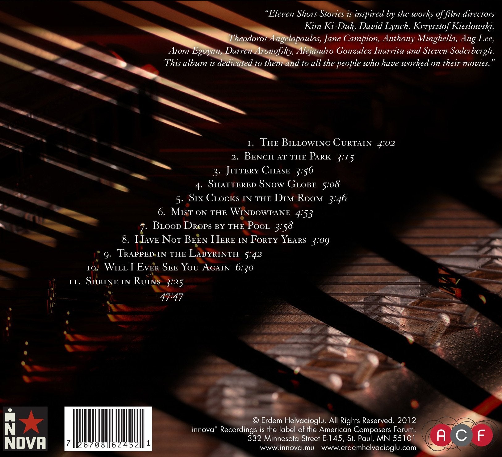 “Eleven Short Stories” is a set of nearly a dozen atmospheric vignettes for prepared piano, paying homage to some of Erdem Helvacioglu’s favorite film directors: Kim Ki-Duk, David Lynch, Krzysztof Kieslowski, Theodoros Angelopoulos, Jane Campion, Anthony Minghella, Ang Lee, Atom Egoyan, Darren Aronofsky, Alejandro Gonzalez Inarritu and Steven Soderberg. Erdem Helvacioglu (b.1975) is one of the most renowned contemporary composers of his generation in Turkey. His music has been called “revolutionary,” “groundbreaking,” “emotionally evocative soundscapes with remarkable beauty,” “uncommonly deep, intelligent, and beautiful cinematic compositions”, “luscious and unique,” and “completely arresting and disarmingly beautiful.” Erdem has received awards from the Luigi Russolo, MUSICA NOVA, Insulae Electronicae Electroacoustic Music Competitions. He has been commissioned by numerous entities, from the 2006 World Soccer Championship to the Bang on a Can-All Stars. He won the “Best Original Soundtrack” award in the 2006 Mostramundo Film Festival, and his film scores have been heard at Cannes, Sarajevo, Locarno, Seoul, Sao Paulo, and Sydney film festivals.