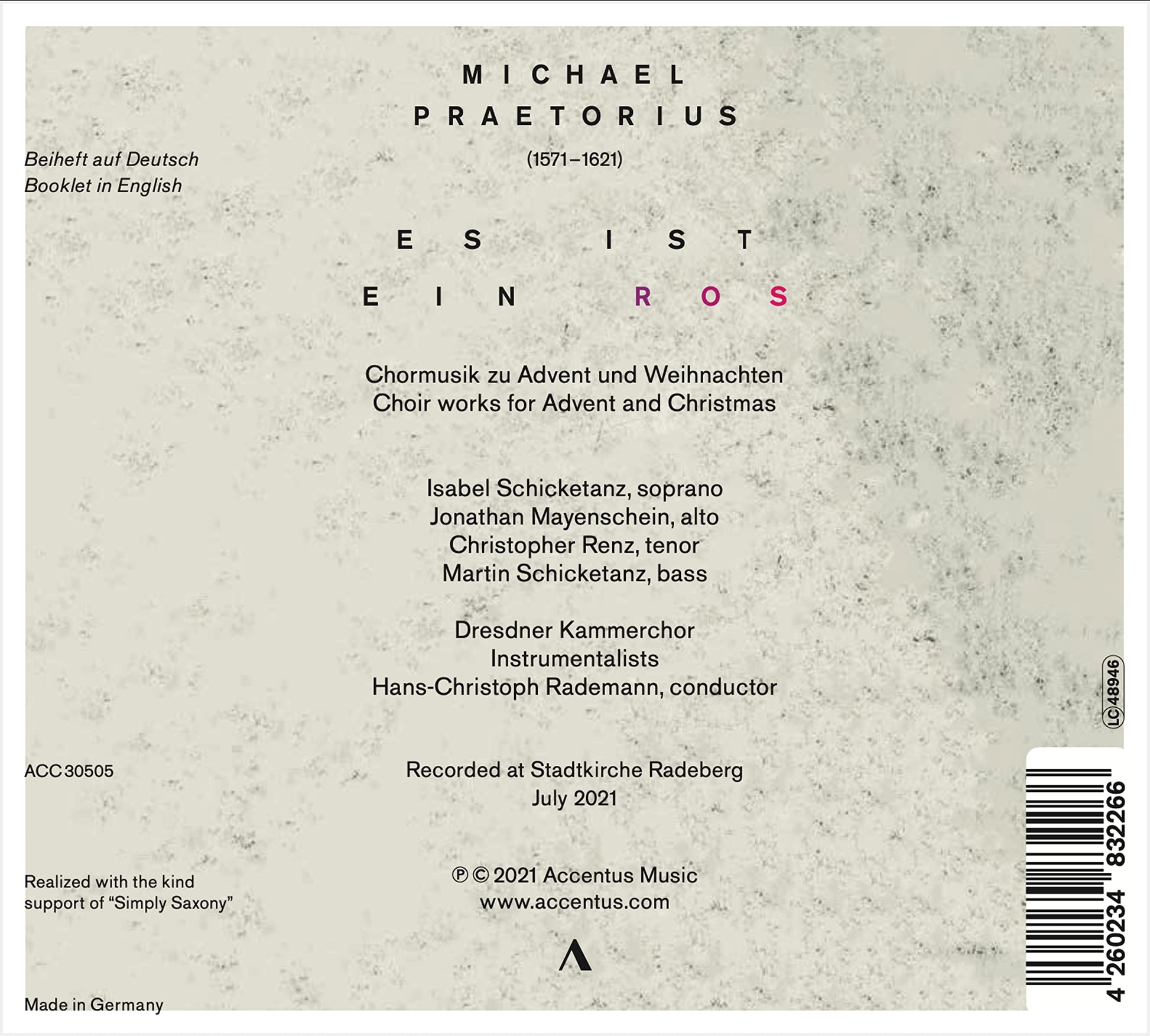 Advent is a time of heightened feelings: anticipation and tense expectation alternate with moments of reflection and proverbial contemplation. The Holy Night, finally, is both: a bright and radiant time, but also a darkness that invites to contemplation. Advent is also a time of contrasts: the king of the world is a child, the savior of the world lies in a manger among animals. It is these tensions, contrasts and manifold states of mind that are at the heart of the new album of the Dresdner Kammerchor with music for Advent and Christmas by Michael Praetorius (1571-1621). 2021 is the year of the 450th anniversary of the birth and 400th anniversary of the death of Michael Praetorius. He was a composer, organist, court kapellmeister and scholar in the transitional period from Renaissance to Baroque. He is one of the most important musicians in Europe around 1600. The program provides a selection of the most beautiful Advent music to accompany not only the Advent and Christmas season with his masterpieces, but also to let the listener discover the music of Michael Praetorius.