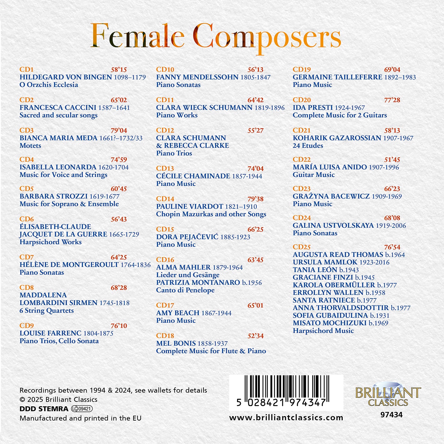This remarkable set gathers many individual recordings of music by women composers, which Brilliant Classics has quietly yet actively championed in their catalogue for decades, uniting it with exciting new outings, so that a comprehensive historical picture of the highly varied struggles and successes of women composers through the ages to our present time are chronicled and celebrated.