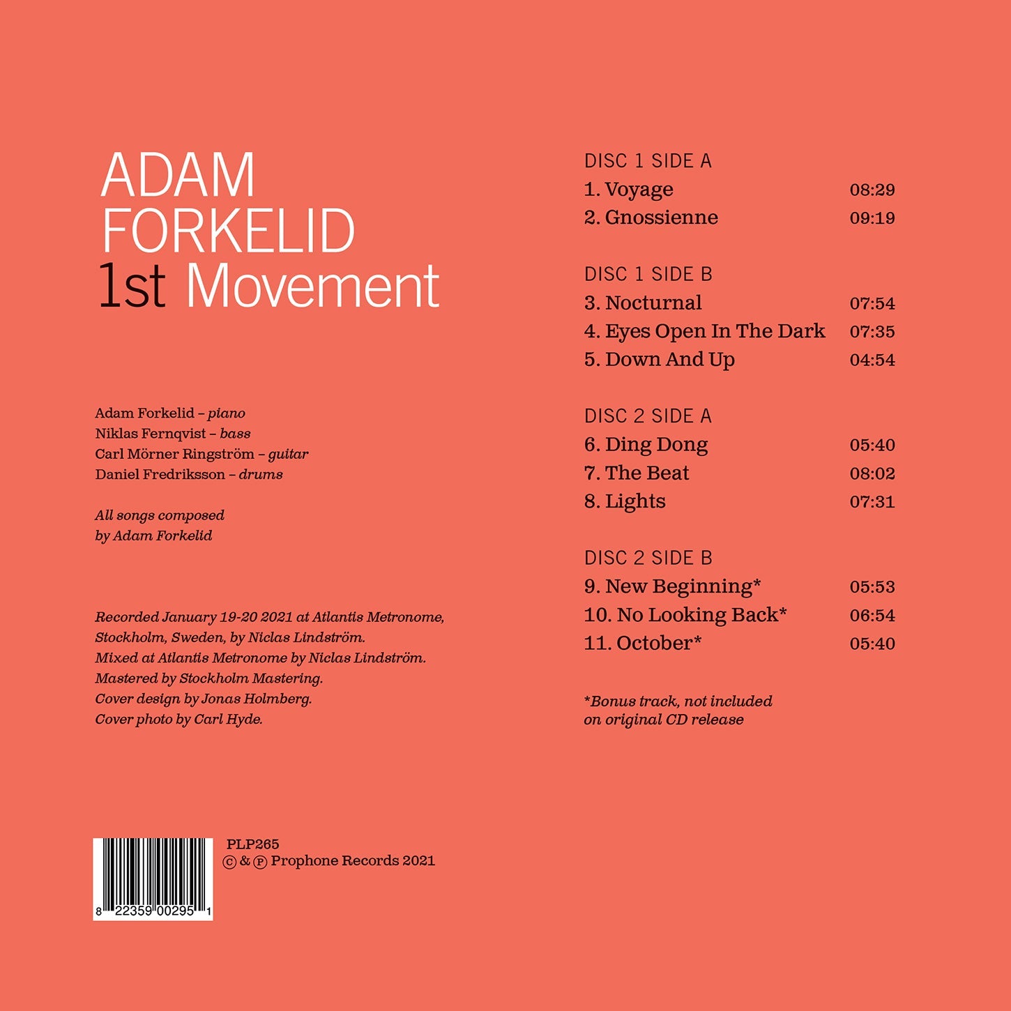 Adam Forkelid writes: “Sometimes, all of a sudden, everything lines up and a clear path is shown to you. That is what happened the very first time I played with the band you hear on this album. Everything seemed to fall in to place and the feeling that a permanent group had formed was immediate. So after a couple of gigs and rehearsals we went into the studio and this record was born. Music and life sometimes make great leaps. Gnossienne is a word I borrowed from the great Erik Satie, to whom I also want to dedicate the song. Nocturnal of course has its fair share of maestro Chopin. And The Beat I would like to dedicate to the late and great Chick Corea. Without you, I would never have gotten started in the first place. Your spirit will live on forever.”
