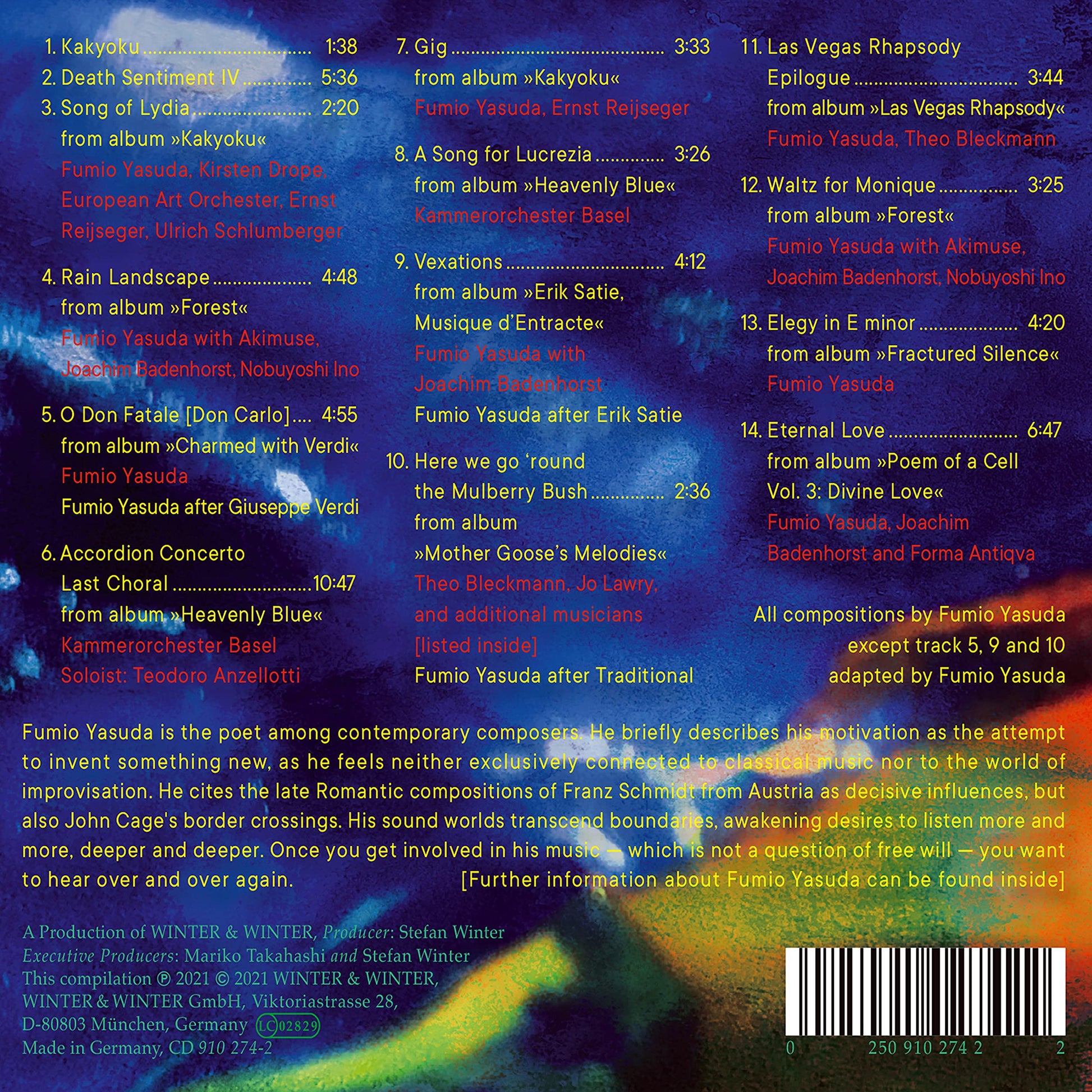 Fumio Yasuda briefly describes his motivation as the attempt to invent something new, as he feels neither exclusively connected to classical music nor to the world of improvisation. He cites the late Romantic compositions of Franz Schmidt as decisive influences, but also John Cage's border crossings. Yasuda, born in 1953, is the poet among contemporary composers. He learned to play the classical piano in his childhood and studied composition at the Kunitachi College of Music in Tokyo. At 20, he joins the avant-garde jazz group "Angry Waves" led by Masayuki “Jojo" Takayanagi. His debut album "Kakyoku" on Winter & Winter "conquers ... through the art of transforming the familiar into the own, of mirroring the model until something new has emerged in tiny mutations, possibly even blurs of vision." (Andreas Obst, F.A.Z.). Recordings are made with the Basel Chamber Orchestra, the European Art Orchestra, a soloist ensemble with musicians from the Stuttgart Chamber Orchestra conducted by Bernd Ruf, vocalist Theo Bleckmann, the Spanish baroque ensemble Forma Antiqva conducted by Aarón Zapico and the clarinettist Joachim Badenhorst together with Nobuyoshi Ino on bass and the singer Akimuse ("Forest"), in addition to piano solo productions and audio films (cinema for closed eyes) such as "Charmed with Verdi" and "On the Path of Death and Life“.