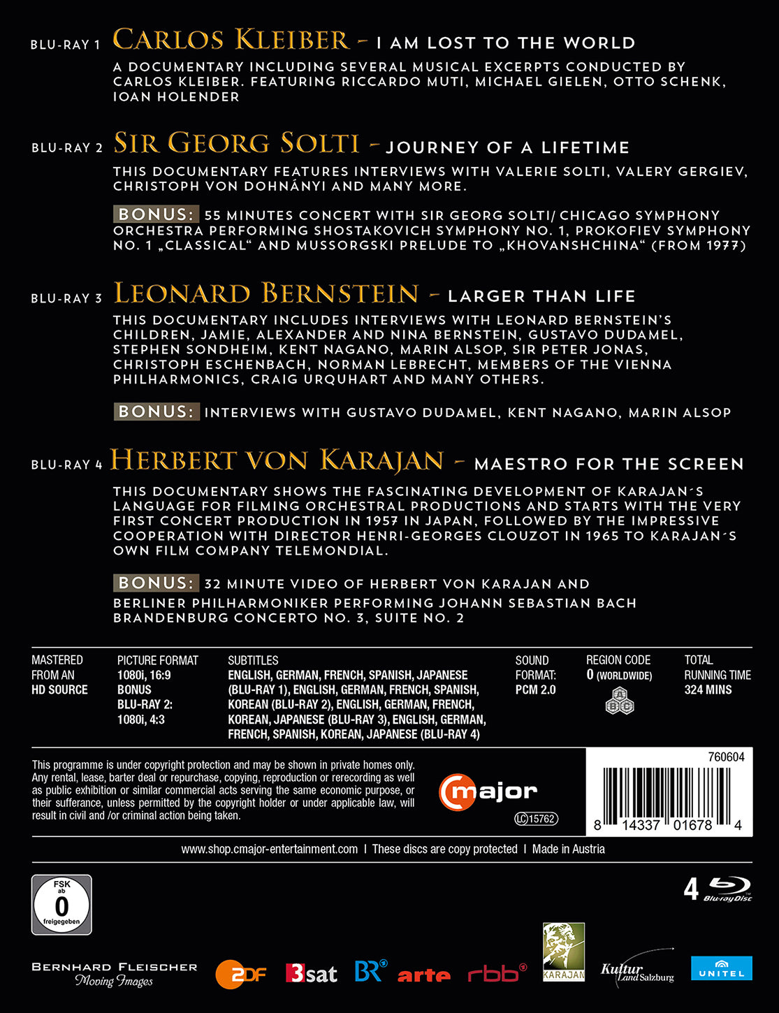 Performer: Carlos Kleiber, Georg Solti, Georg Wubbolt, Herbert Von Karajan, Leonard Bernstein