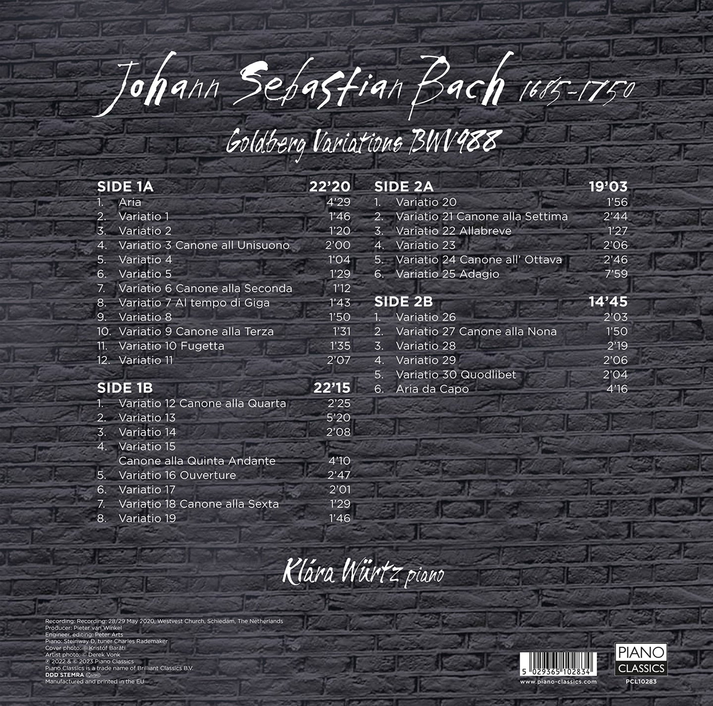A superb, collector’s-item vinyl transfer for a recent and widely acclaimed recording of Bach’s nocturnal meditations. When Piano Classics released this recording of the Goldberg Variations on CD in 2022, critics praised its natural phrasing and unobtrusively skilful and sensitive response to the technical demands made by Bach in his most virtuosic piece of keyboard writing. According to Fanfare magazine, the playing of Klára Würtz ‘has limpid clarity, and rhythmic firmness and exactitude; her articulation is clean and nimble (she has a cleaner trill than Perahia), and her voicing of different lines is splendidly balanced. Her rapid playing is vigorous, her slower playing has calm repose. Her interpretive outlook has spirit and vivacity, but also a total sense of confidence and security, the kind of integrity that needs no ostentatious display to make its mark of absolute rightness... Perahia now has a pianistic rival on my shelf; strongly recommended.’ Reviewers elsewhere were hardly less enthusiastic. ‘Cards on the table, what Würtz’s Goldbergs offer is calm appreciation of the music’s manifold beauties,’ according to Rob Cowan in Gramophone. ‘Her pianism sidesteps overt display or affectedness in favour of purely musical values... This for me is truly great piano playing, a direct route to the soul with no tiresome diversions along the way.’ Vinyl collectors can now enjoy this superb recording in a new transfer made for analogue at the Edel factory in Hamburg, which specialises in collector’s print LP editions such as this one. The heavy-grade vinyl has exemplary quiet surfaces, and the Dutch church acoustics of the original recording gain a rounded, luminous quality which ideally complements Klára Würtz’s pianism. The set is issued as a 2LP gatefold with booklet notes on the inner sleeve.
