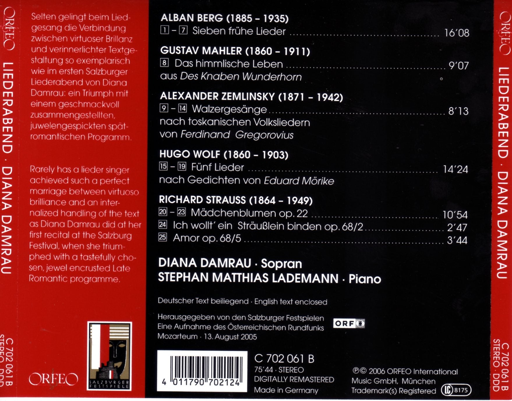 Composer: BERG MAHLER ZEMLINSKY WOLF