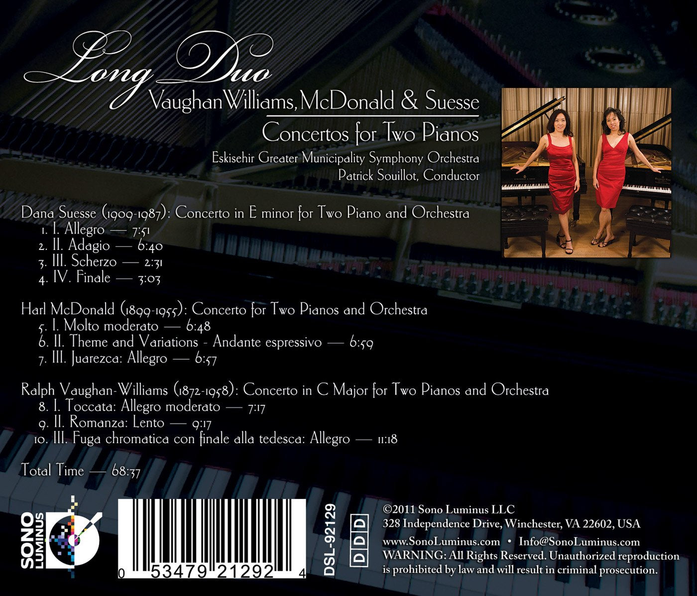 SUESSE Concerto for 2 Pianos and Orchestra. McDONALD Concerto for 2 Pianos and Orchestra. VAUGHAN WILLIAMS Concerto for 2 Pianos and Orchestra • Long Duo; Patrick Souillot, cond; Eskichir Greater Municipality SO • SONO LUMINUS DSL 92129 (68: 37)