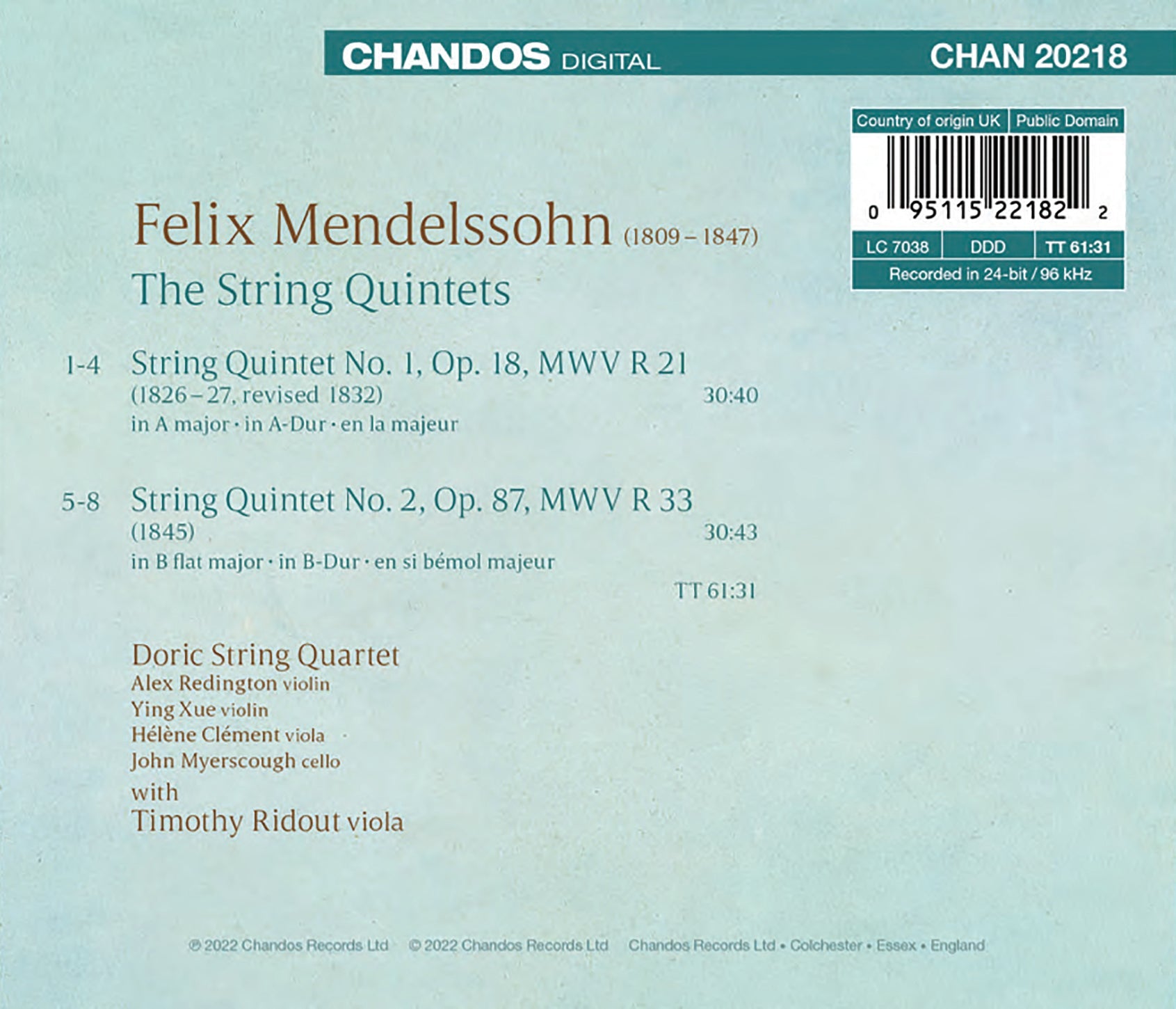 Catalog Number: CHAN 20218
