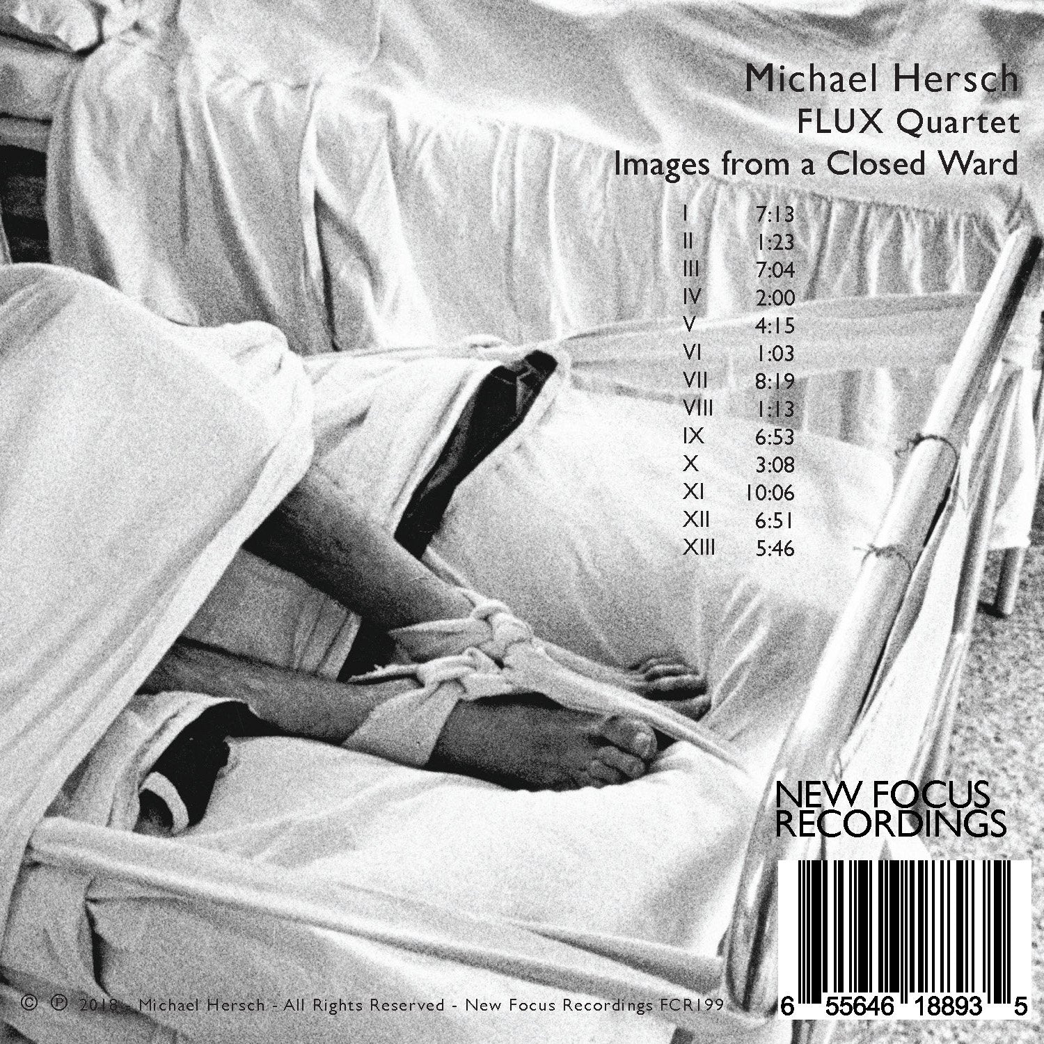Composer Michael Hersch's string quartet, performed here with absolute commitment by the New York based FLUX Quartet, is inextricably connected to his friendship with the late American artist Michael Mazur. More specifically, Hersch was inspired by a series of etchings and lithographs Mazur did of inmates in a Rhode Island mental asylum in the 1960's. In his musical depiction of these images, Hersch writes music that is at times aggressive and disturbing and at other times wistful, but always with the profound intensity of a deeply sensitive nature. Mazur wrote of Hersch’s music: “These compositions are filled sometimes with frightening sounds. They are unrelenting, nearly without hope… But no artwork can be without hope since it is in the very nature of creative work to be optimistic, if only in as much as we continue to work through everything but our own death.”