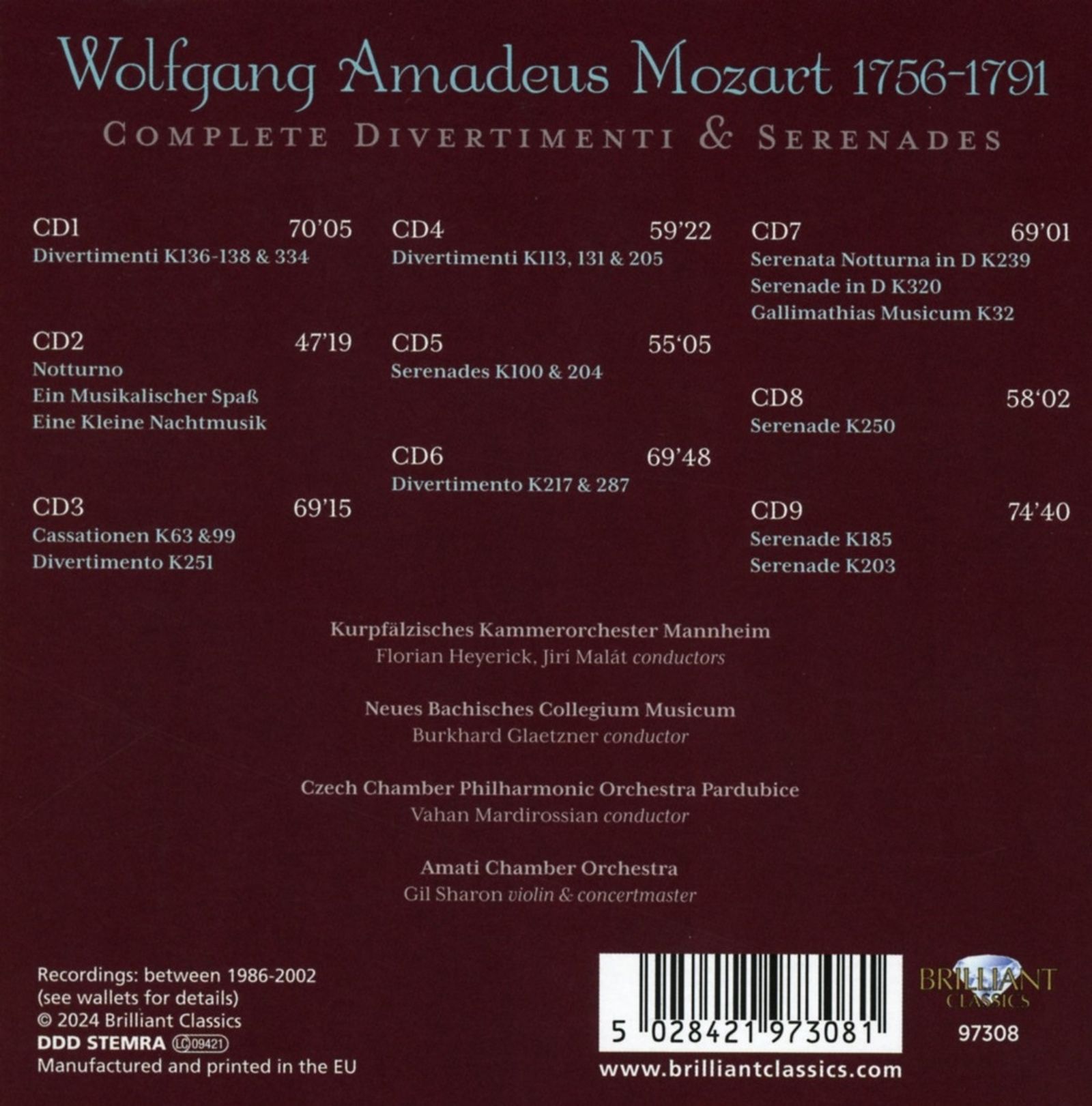 This new collection brings together historically informed recordings made by Brilliant Classics together with digital-era versions of rarer repertoire, initially issued by Berlin Classics and Capriccio, featuring stylish German ensembles with a natural feeling for the Mozart idiom. A new essay by Jos van der Zanden ranges over Mozart’s approach to the divertimento genre, observing how the composer systematically satisfies the demands of the contrasting kinds of listener known in the 18th century as Liebhaber (music-lovers) and Kenner (connoisseurs). There are private jokes, not only in the infamous Musikalischer Spass but the contrast between solemnity and levity in the Haffner Serenade. No less than in the more intellectually prized genres of quartet, sonata, and opera seria, Mozart is always experimenting with form, instrumental color, and harmony, and such a complete set allows listeners at every stage of their musical development to explore this for themselves.