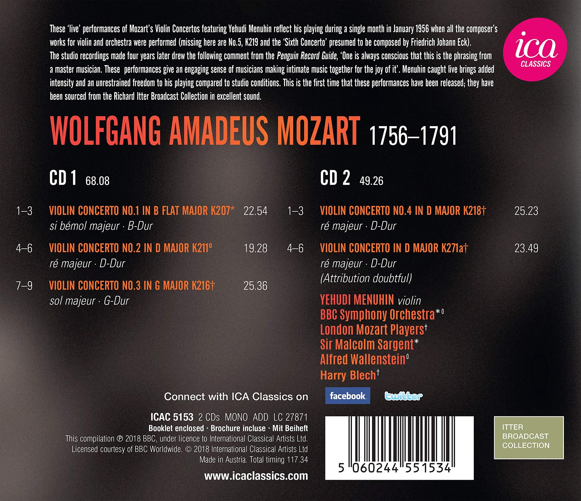 This release has been sourced from the Richard Itter archive of ‘live’ recordings. The collection is very important for collectors because it has never been released before onto the market. Following the archive’s launch in October 2017 with releases featuring Beecham, Bohm, Cantelli, Karajan, du Pre, Klemperer and Rostropovich, it has received universal praise from both the classical media and record collectors for the excellent sound and performances. Celebrated violinist Yehudi Menuhin was very familiar with the Mozart Concertos, and played all seven including the spurious No. 6. These ‘live’ performances reflect Menuhin’s Mozart playing during a single month in 1956 where he performed all the composer’s major works with orchestra. Menuhin brings great insight and experience to every concerto and his intonation which became a concern in later life is spot on with these performances.