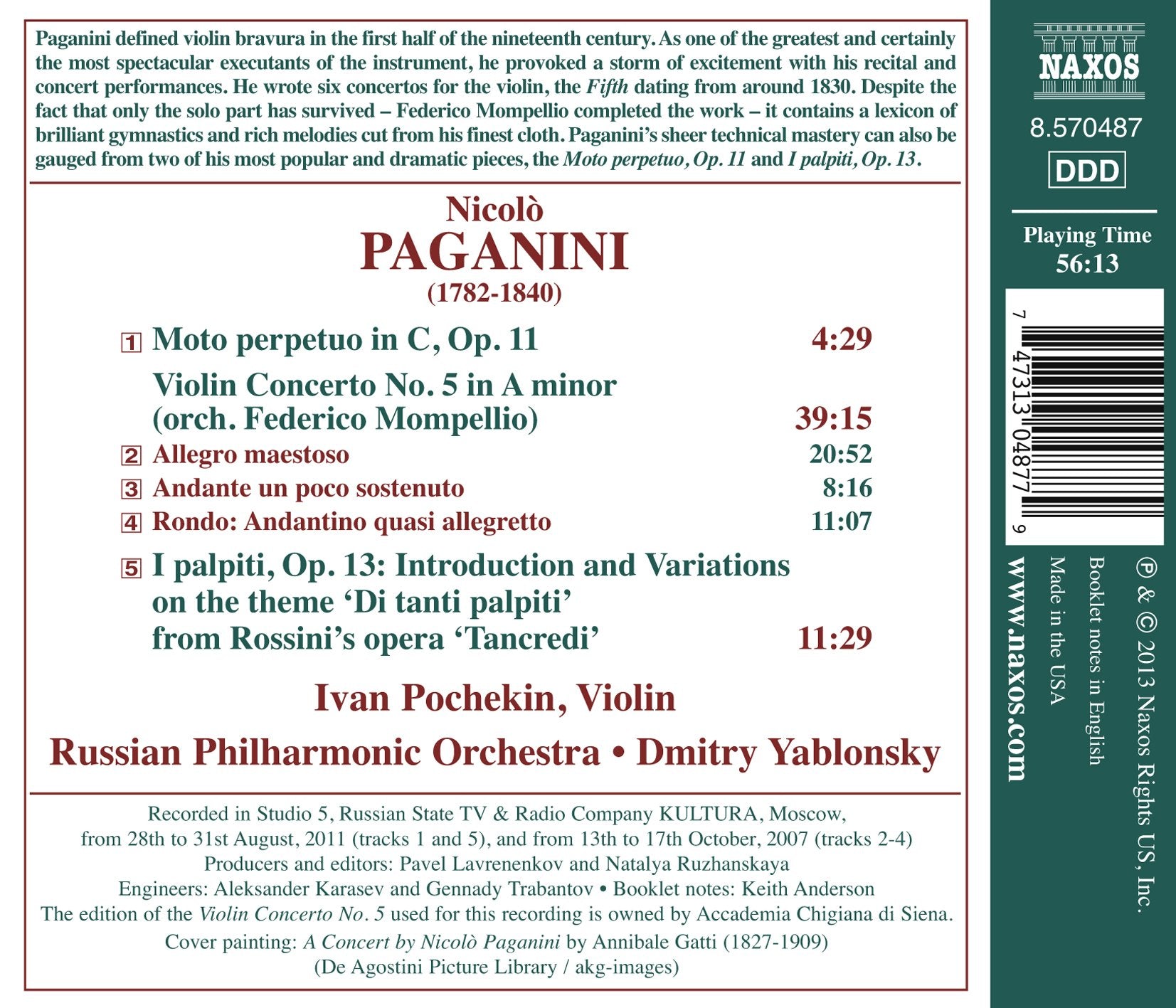 Paganini defined violin bravura in the first half of the nineteenth century. As one of the greatest and certainly the most spectacular executants of the instrument, he provoked a storm of excitement with his recital and concert performances. He wrote six concertos for the violin, the Fifthdating from around 1830. Despite the fact that only the solo part has survived – Federico Mompellio completed the work – it contains a lexicon of brilliant gymnastics and rich melodies cut from his finest cloth. Paganini’s sheer technical mastery can also be gauged from two of his most popular and dramatic pieces, the Moto perpetuo, Op. 11 and I palpiti, Op. 13.