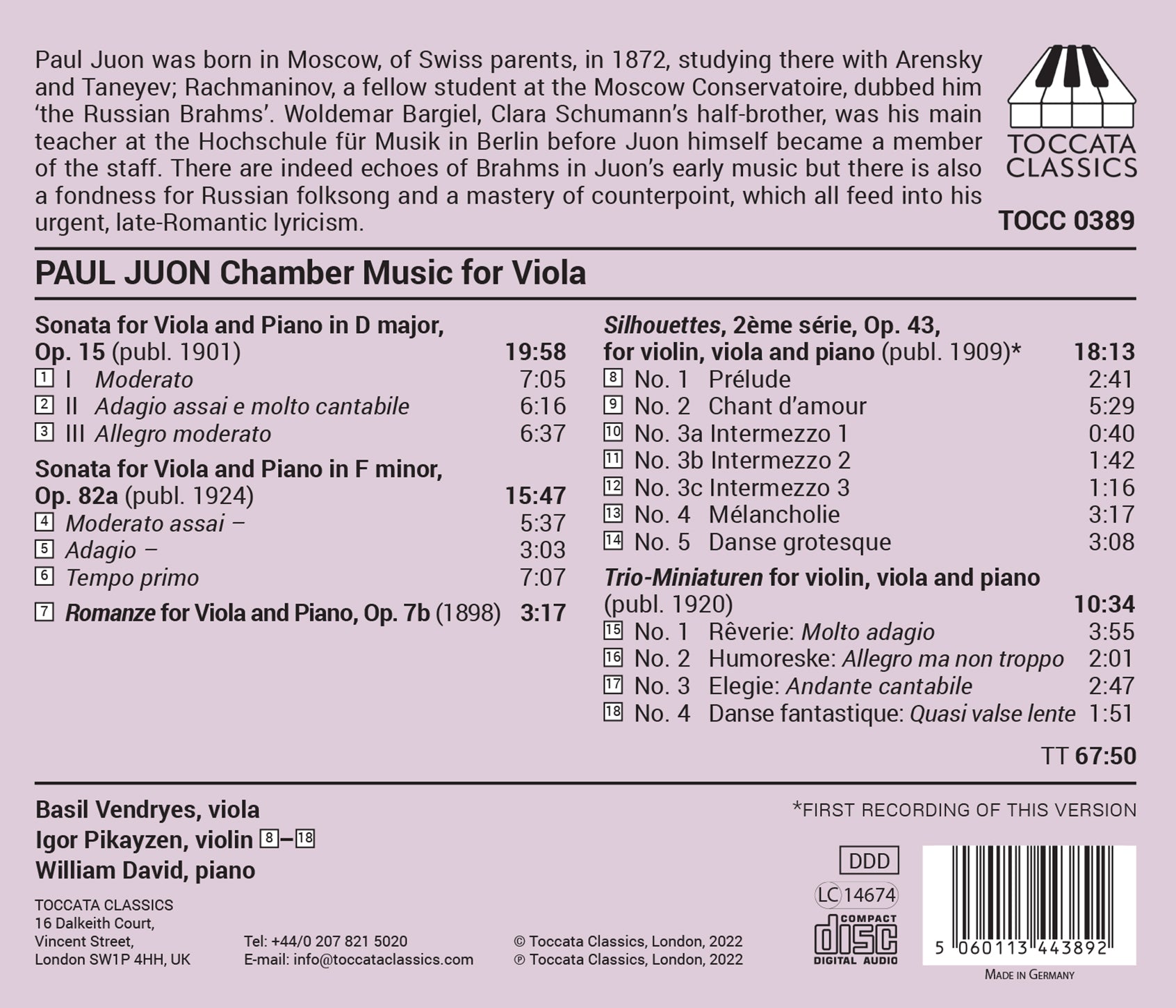 Paul Juon...studied with Woldemar Bargiel in Berlin at the Hochschule für Musik. These influences developed him into a hothouse for late-Romantic lyricism and, on this showing, a skilled purveyor of channelled sentimentality.