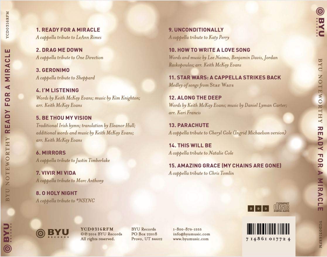 BYU Noteworthy seeks to uplift people across the world with their voices. After ten years of producing highly acclaimed recordings, touring throughout the United States, appearing on NBC's a cappella competition The Sing-Off, and winning the International Championship of Collegiate A Cappella, it is no surprise that this nine-voice, all-female ensemble has become one of the most popular a cappella groups in the nation. The group's version of Chris Tomlin's Amazing Grace (My Chains Are Gone) is found on this release.