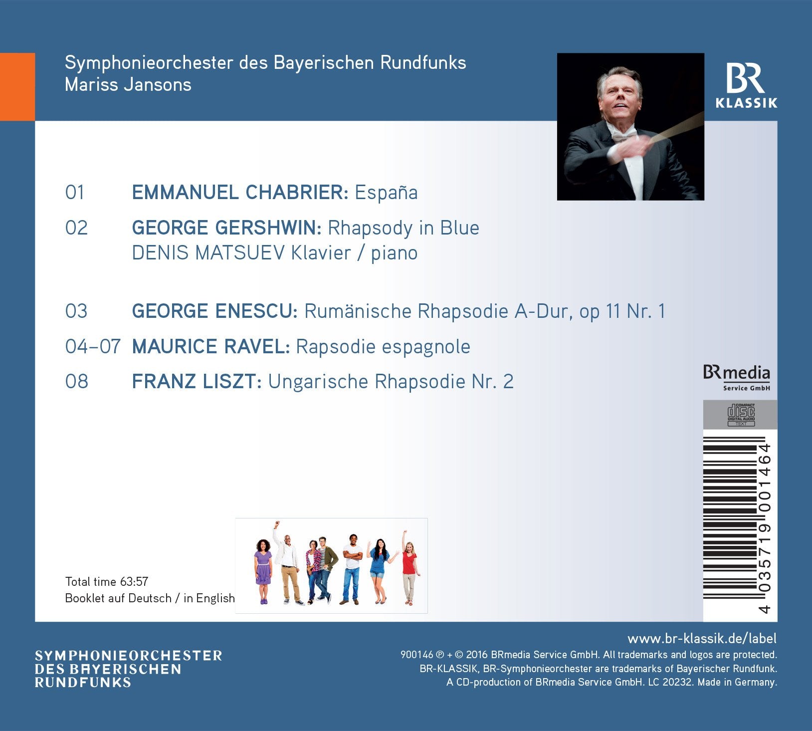 This newest release from BR KLASSIK explores the genre of the 19th and 20th century Rhapsody, featuring works from masterful composers Emmanuel Chabrier, George Gershwin, George Enesecu, Maurice Ravel, and Franz Liszt. The concert-like atmosphere of this recording makes this a truly unique release, as these works were recorded live in Munich as recently as October 2015. The five rhapsodies featured here come from different regions and the composers’ unique styles can be heard in each of their works. Chabrier’s “Espana” is centered around Iberian and folk music which was very popular at the time. Liszt’s “Hungarian Rhapsody” contrasts this work with its use of Hungarian folk melodies. The ever-popular “Rhapsody in Blue” from George Gershwin throws Americana into the mix with its blues roots. Mariss Jansons and the Symphonieorchester des Bayerischen Rundfunks never fails to please with their brilliant interpretations and performance quality. World-renowned Russian pianist Denis Matusev is brilliant as the “Rhapsody in Blue” soloist.