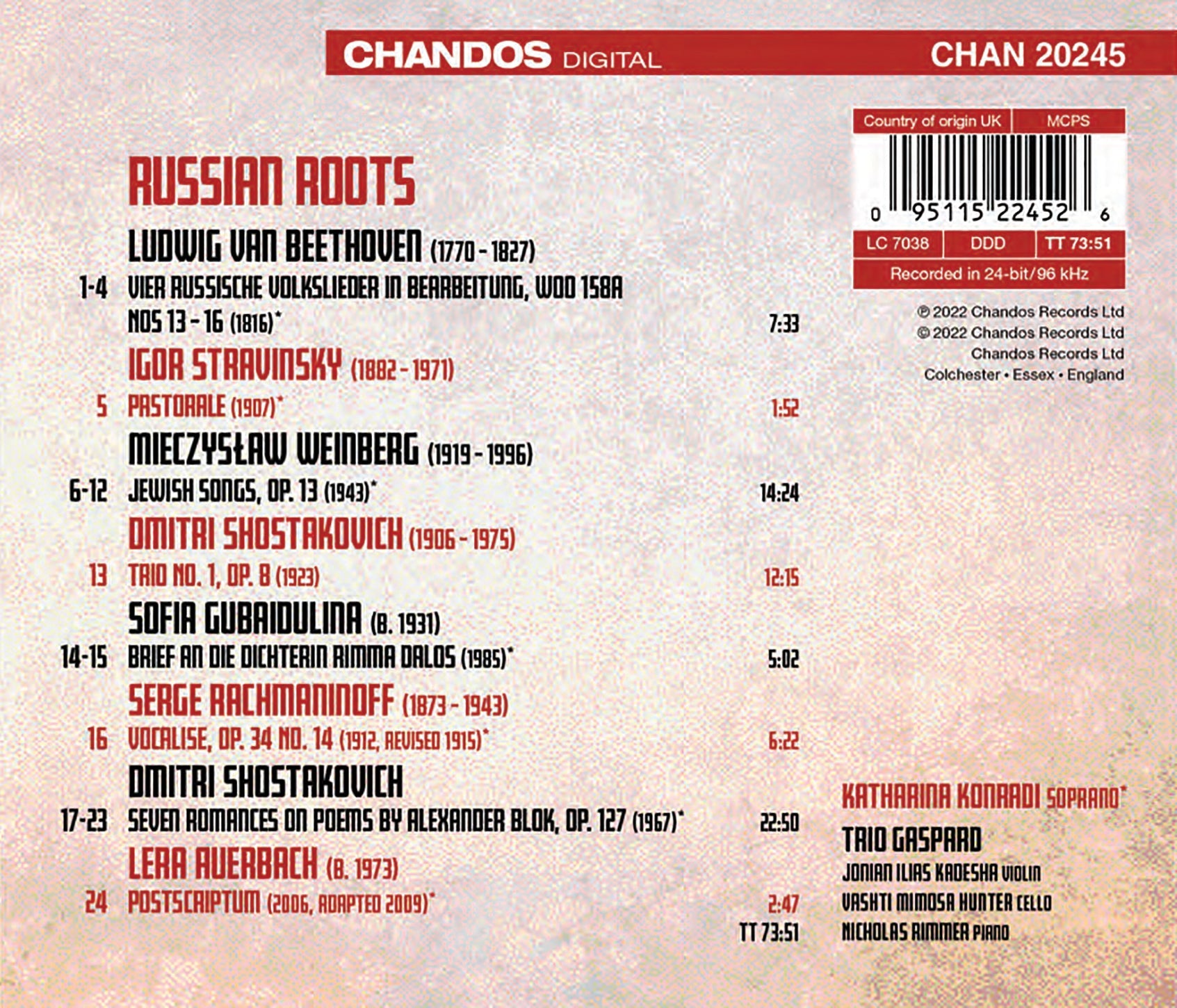 Composer: Lera Auerbach, Ludwig van Beethoven, Sofia Gubaidulina, Sergei Rachmaninoff, Dmitri Shostakovich, Ig