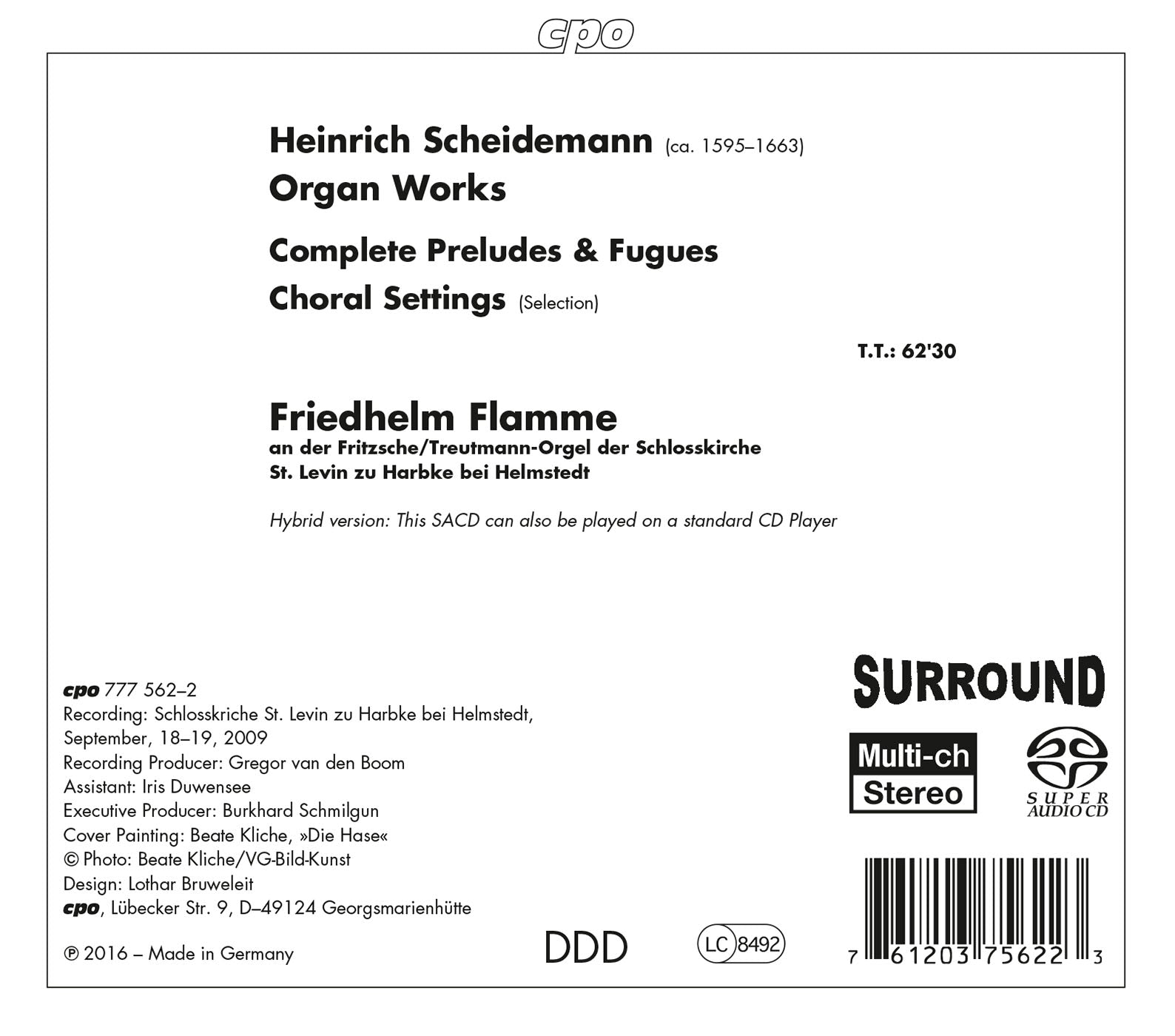 With CPO's Volume 15, their comprehensive project featuring organ works of the Northern German Baroque is now complete. On the last release, Friedhelm Flamme dedicates himself to the complete free organ works, that is, to the complete fugues and preludes, of Heinrich Scheidemann, a composer regarded as one of the co-founders of the Northern German organ school. Some of Scheidemann's chorale settings are also presented. Johann Adam Reincken succeeded Scheidemann as the organist at St. Catherine's Church in Hamburg after his mentor's death and is regarded as his most important pupil. Scheidermann's activity and influence on other organists and choirmasters brought him great respect in Hamburg's music world, and he is regarded as one of the most significant composers or organ works from the early seventeenth century. Here we would like to thank our interpreter Friedhelm Flamme for his renderings of Northern German marvels of organ sound. His recordings demonstrate how genuine technique and virtuosity can be combined with intellectual probing to produce sensational results.