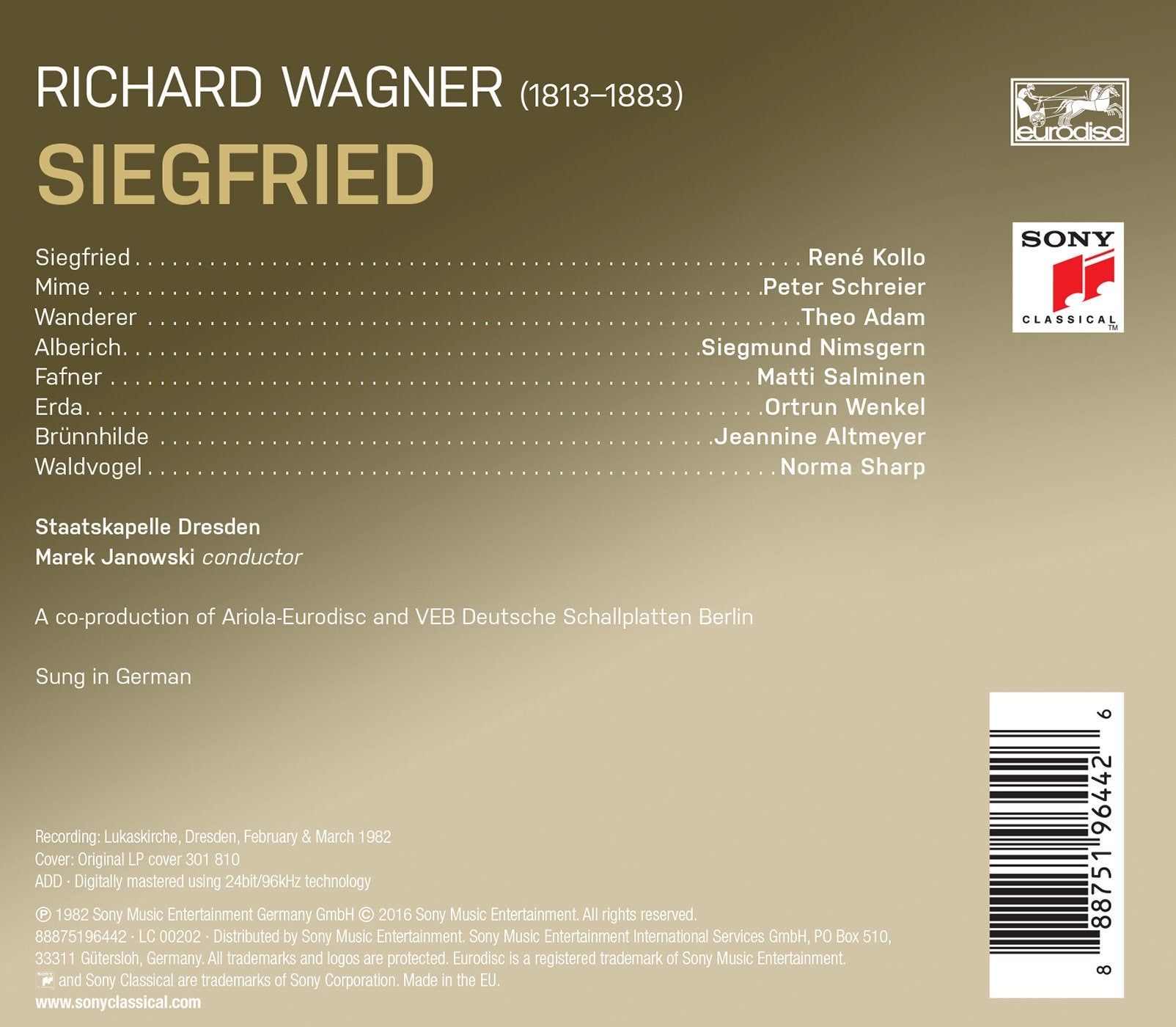 Performer: Kollo, Schreier, Adam, Nimsgern, Salminen, Wenkel, Altmeyer, Sharp, Staatskapelle Dresden, Janowski