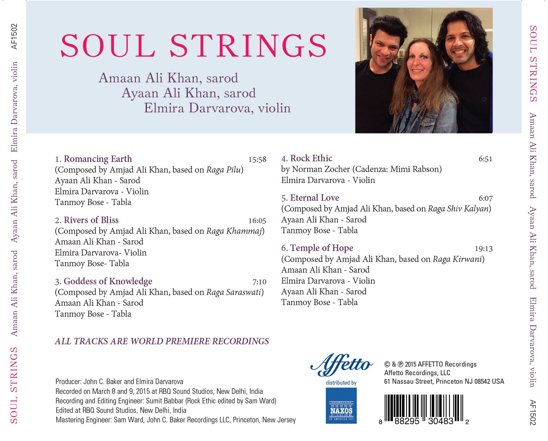 American-based concert violinist Elmira Darvarova teams up for this album with world-renowned masters of the Sarod – brothers Amaan Ali Khan and Ayaan Ali Khan – who represent the seventh generation of a musical lineage known as the Senia Bangash School. The concept of this collaboration (precipitated by a live performance at NYC’s Symphony Space) is to preserve the essence of both Indian and Western traditions so that they are able to partake of each other without artistic compromise, engaging and celebrating both the shared and discrete musical “DNA” of both traditions. The music, composed by Amjad Ali Khan, father of Amaan and Ayaan, as well as disciples of the elder Khan, is based on traditional Indian ragas. The album also includes “Rock Ethic” by Norman Zocher and Mimi Rabson – a solo violin composition based on a different cross-fertilization – inspired by both Bach and Led Zeppelin. All tracks are world premiere recordings. Former concertmaster at NYC’s Met Opera, Ms. Darvarova became the first woman in the organization’s history to attain that post.
