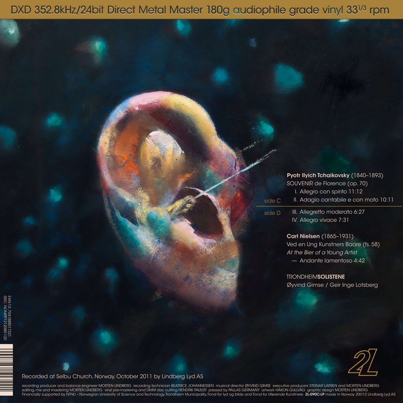 On this 180g vinyl release, artistic director Øyvind Gimse and his associate Geir Inge Lotsberg initially chose two pieces that represent, in their opinion, "the most beautiful music ever composer for the string orchestra": Tchaikovsky's Souvenir de Florence and his Serenade for Strings. Aiming for a 90 minute program, this left 30 minutes to record. TrondheimSolistene and 2L asked fans worldwide what they would like to hear. The majority voted Nielsen's Suite Opus 1, a little gem that would exploit the Trondheim Soloists' singular way with Nordic repertoire. TrondheimSolistene are regarded as one of the top chamber orchestras in the world. Their DIVERTIMENTI and FOLK STYLE were both nominated for a total of five American GRAMMY Awards in categories "Best Small Ensemble", "Best Engineered Album" and "Best Surround Sound Album".