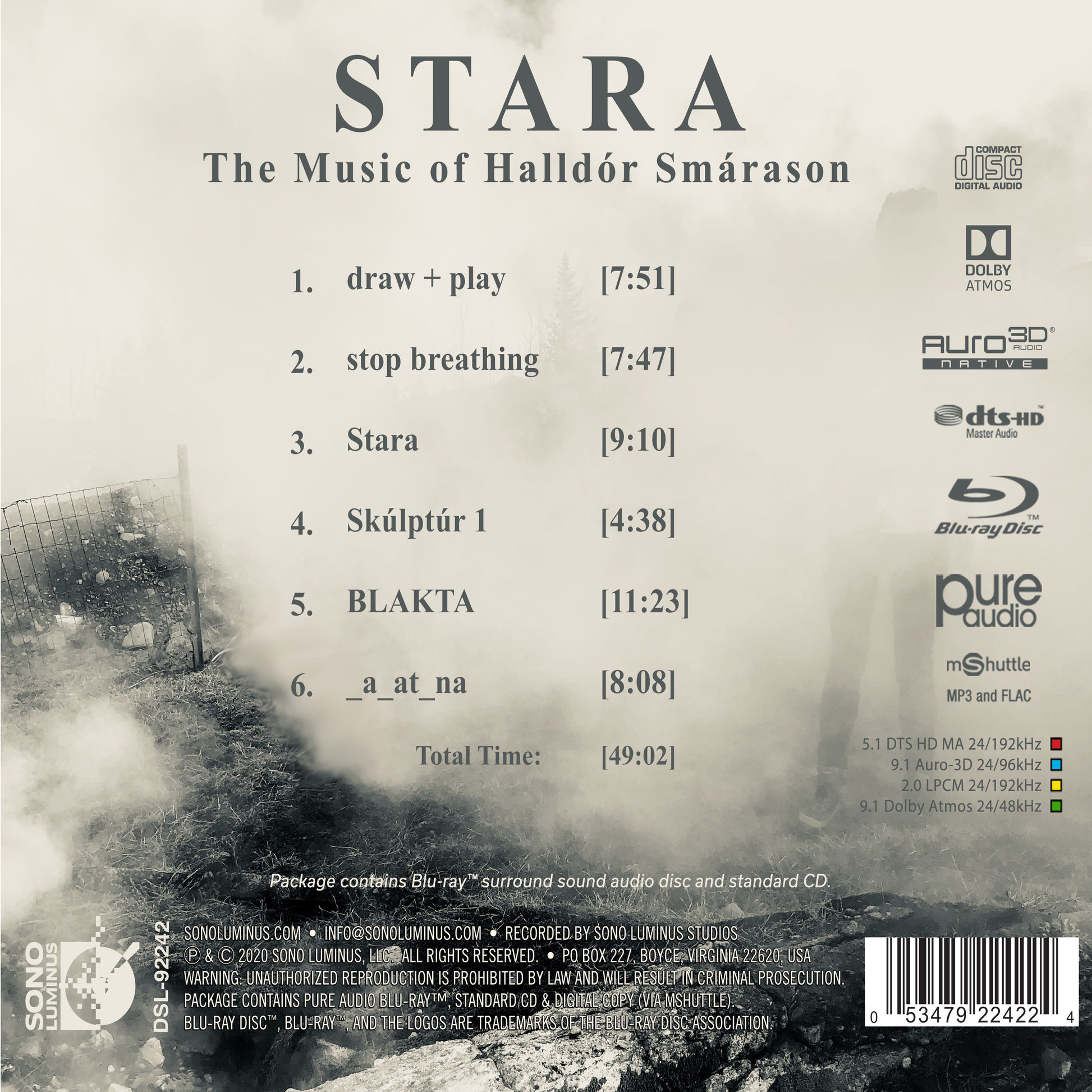 STARA is Halldór Smárason’s debut album. It was recorded in Halldór’s hometown of Ísafjörður, in the Westfjords region in the northwestern part of Iceland. Featuring works from different stages in the composer’s life, ranging from his student years in New York to this day as a family man and freelance composer, STARA shows Halldór’s development of a characteristic style and unique sense of narrative. All the works on the album are inspired by personal experiences and are often dedicated to people close to the composer himself. STARA features Halldór’s three string quartets: draw + play, Stara, and BLAKTA; the guitar solo piece Skúlptúr 1; and the chamber works _a_at_na and stop breathing. Halldór’s music has been described as atmospheric yet aggressive, characterized by a simmering energy just beneath the surface that erupts from time to time. His compositional voice is highly original and personal. In each composition, Halldór strives for a distinct approach, which is guided by the specifics of the composition (the occasions, the space, the instruments, the performer, etc.). As a result, his sonic repertoire is extremely rich. He often includes extra-musical and music-theatrical aspects, which create highly distinct artistic experiences. Additionally, Halldór has been acknowledged for high attention to detail in regard to sound and notation. STARA is intended to be an insightful portrait of the composer, introducing Halldór’s poetic sonic world.