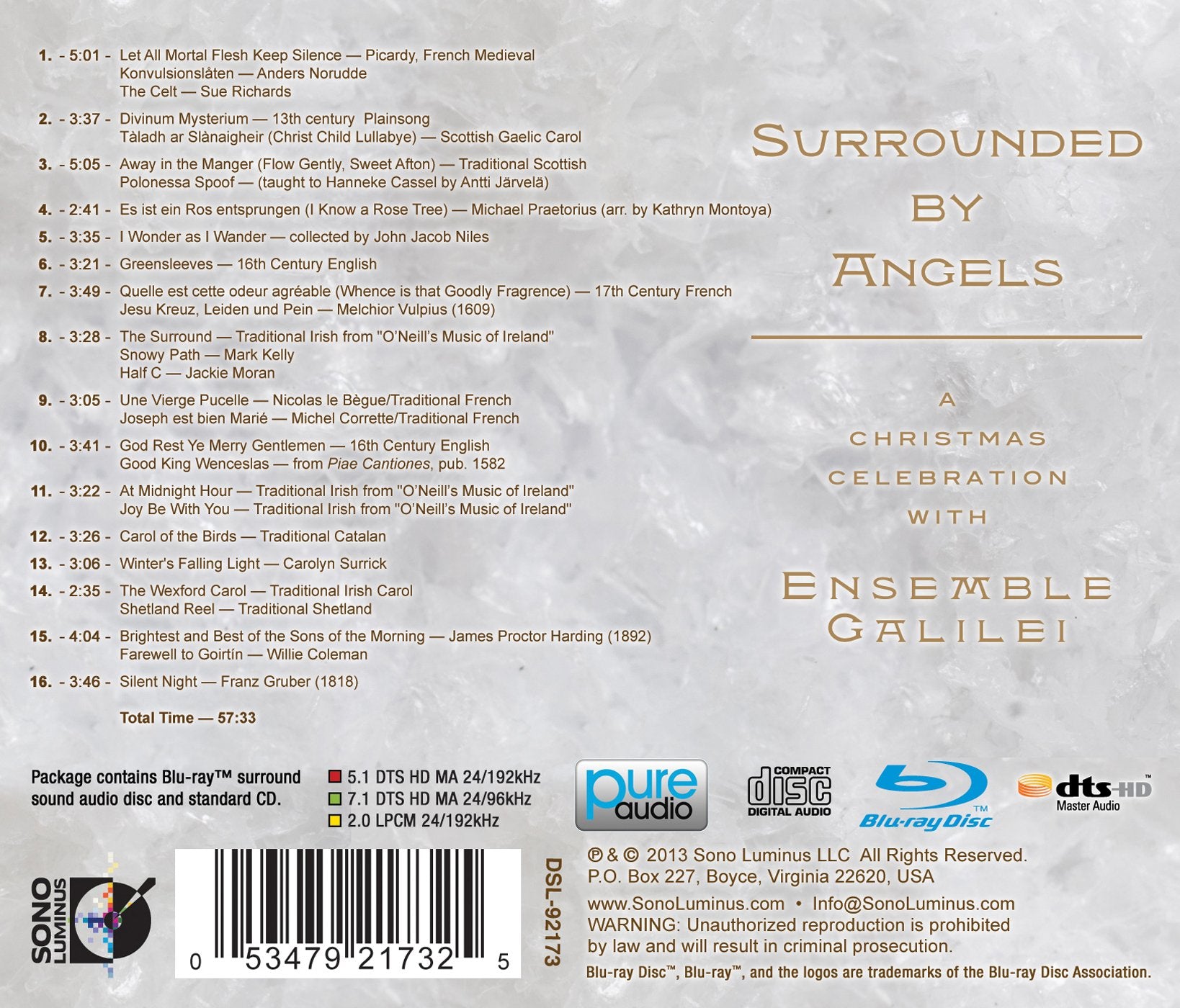 Along with tried and true favorites there are also some original compositions as well, and they fit just like a glove. This is quite simply a stunning album, and I can’t imagine a better seasonal offering coming along this year. With spectacular Blu-ray audio surround sound (though be warned it is recorded at a high level and you will want to turn it down from your regular settings) and an accompanying CD, the only thing I wish there was more of that is missing is more music! But I can’t complain—this is a spectacular album.