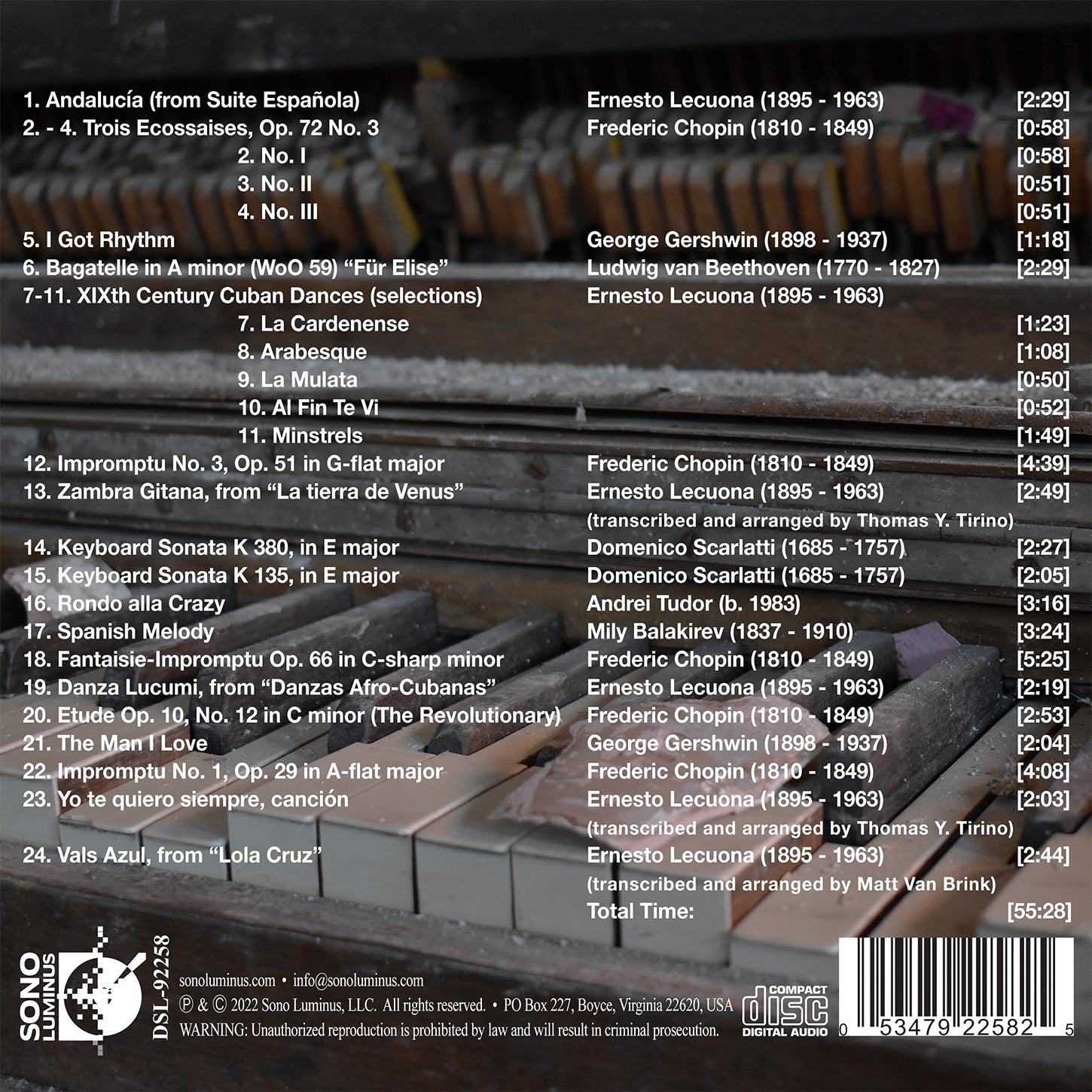 Matei Varga writes: “To paraphrase Tolstoy, all happy memories feel more or less the same; but the unhappy times are experienced differently by each one of us. We’ve all had some really tough weeks, which sometimes turned into months, and (with a bit of bad luck) into years… I like to think that “off” years help us grow and prepare for the beautiful things that will undoubtedly come our way (I am an optimist at heart), but living through dark times is a complicated process. The year 2020 was complicated indeed. The world was put on hold and we hardly remember what we did in February, or May, or September… Many suffered from isolation and the inability to socialize - and they probably prefer to think back to 2020 as a year that never happened… I, on the other hand, felt liberated by the lack of schedules, appointments and the pressure to be productive - that horrid word which is killing our souls, slowly but surely. Instead I embraced seclusion and enjoyed the time off which was forced upon us. Yes, I did miss performing in front of a live audience and traveling to beautiful places, but I found that staying home, with my piano, offered me a better view towards my inner self and a chance to experience the joy of a new discovery. That was for me the Cuban master Ernesto Lecuona…Two years later, the pandemic isn’t over and neither is the collective anxiety- but at least I can offer you this very personal recording, which I hope will take your mind away from current realities. This is music’s most phenomenal power- to bring joy when we really need it!...”