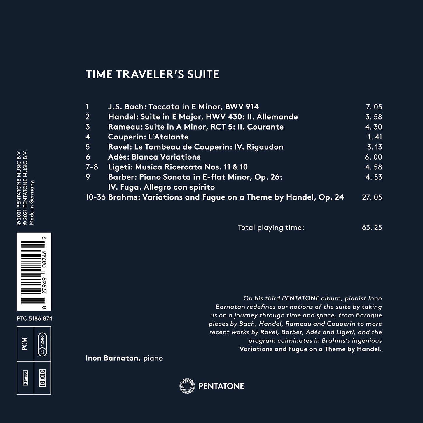 On his album Time Traveler’s Suite, pianist Inon Barnatan redefines our notions of the suite by taking us on a journey through time and space, from Baroque pieces by Bach, Handel, Rameau and Couperin to more recent works by Ravel, Barber, Adès and Ligeti. The program culminates in Brahms’s ingenious Variations and Fugue on a Theme by Handel. Inon Barnatan is "one of the most admired pianists of his generation." - New York Times (Pentatone)