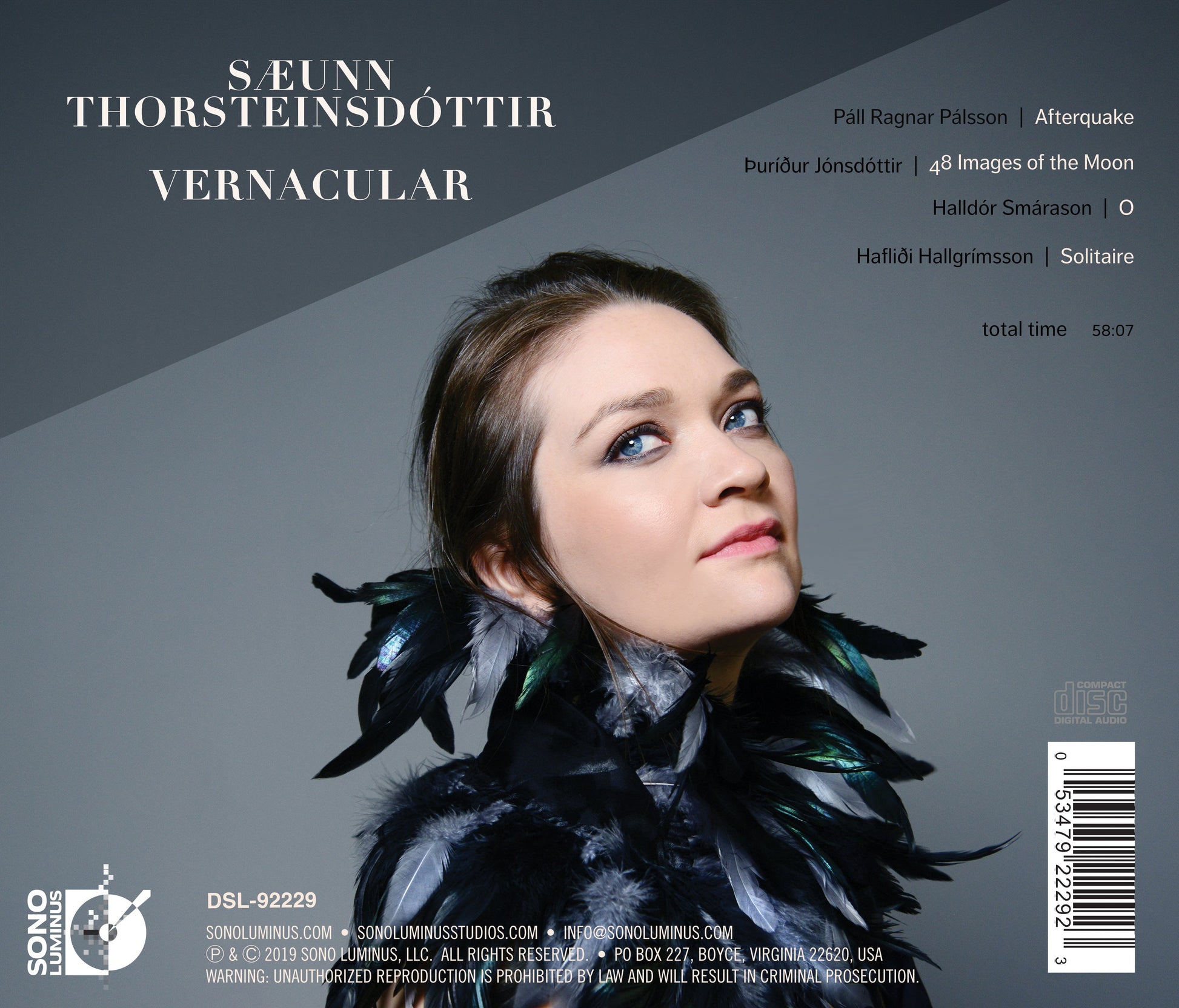 Sæunn Sæunn Thorsteinsdóttir writes, “I dream in Icelandic despite having spent most of my life outside of Iceland. My native language shows itself in other ways too, as I found out early in my development as a cellist, when my teacher pointed out that I am extremely sensitive to the textures and overtones of sound, probably related to the abundance of unvoiced consonant sounds in Icelandic. It is an old language, preserved by isolation, and in the process of adapting to a quickly changing world. I see classical contemporary music sharing a similar process, finding new sounds and ways of expression through old means in a dialogue with our way of life. There is also an appreciation of silence and economy of expression in Icelandic culture that I find comforting and fascinating. This project is a compilation of pieces by composers that not only share my mother-tongue and culture, in language and music, but also bring their unique perspective and expression in their compositions. From the moment that I played Solitaire for the first time, I felt a connection, not only to the music but also beyond the music. The more recent pieces are collaborations with Halldór, Páll and Þuríður and I couldn’t have asked for more generous artists to come into my life and allow me to explore my voice through their music. This project has stretched me and challenged me in ways that I couldn’t begin to comprehend, a homecoming of sorts in my musical life and I have many people to thank for making it happen.”